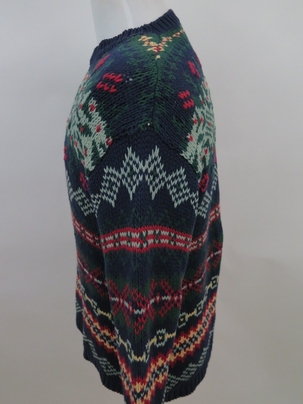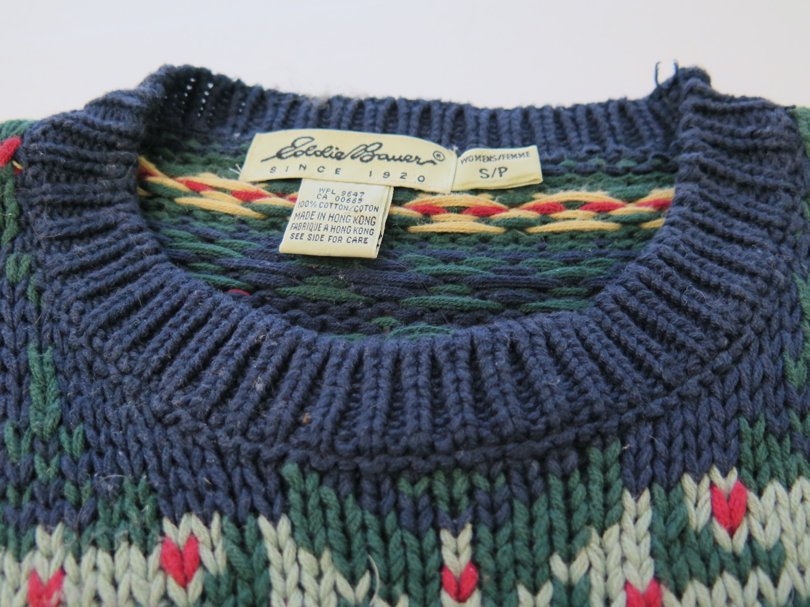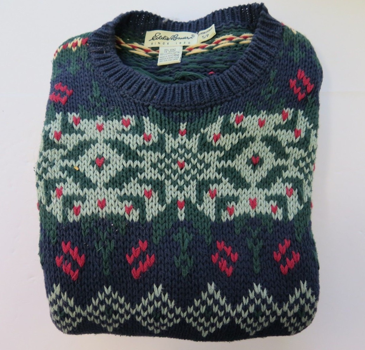 Womens Eddie Bauer Cotton Colorful Fair Isle Geometric Crewneck Sweater Small