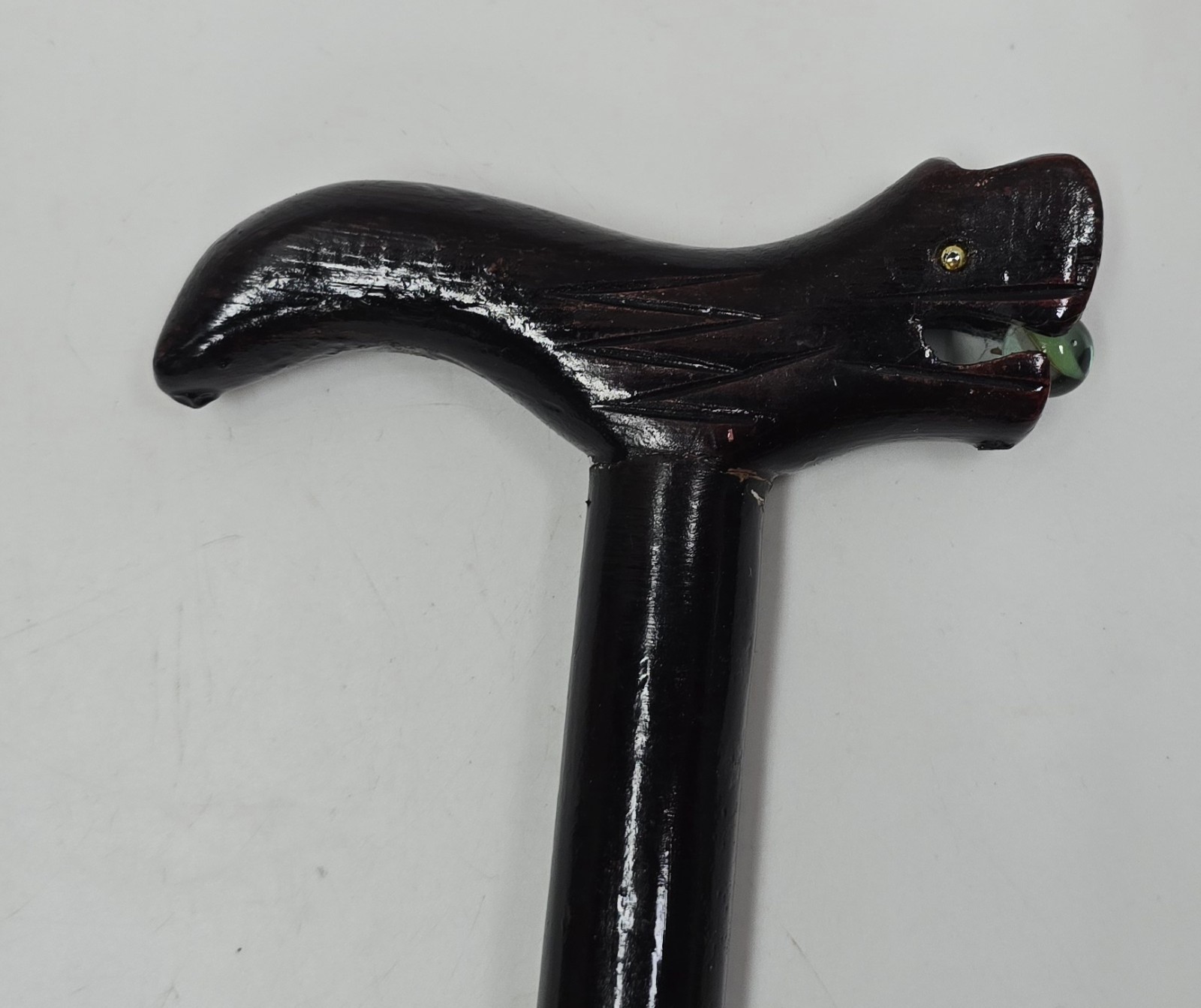 как выглядит Vintage Oriental Black Lacquered Wood W/Flames Dragon Walking Stick Cane фото