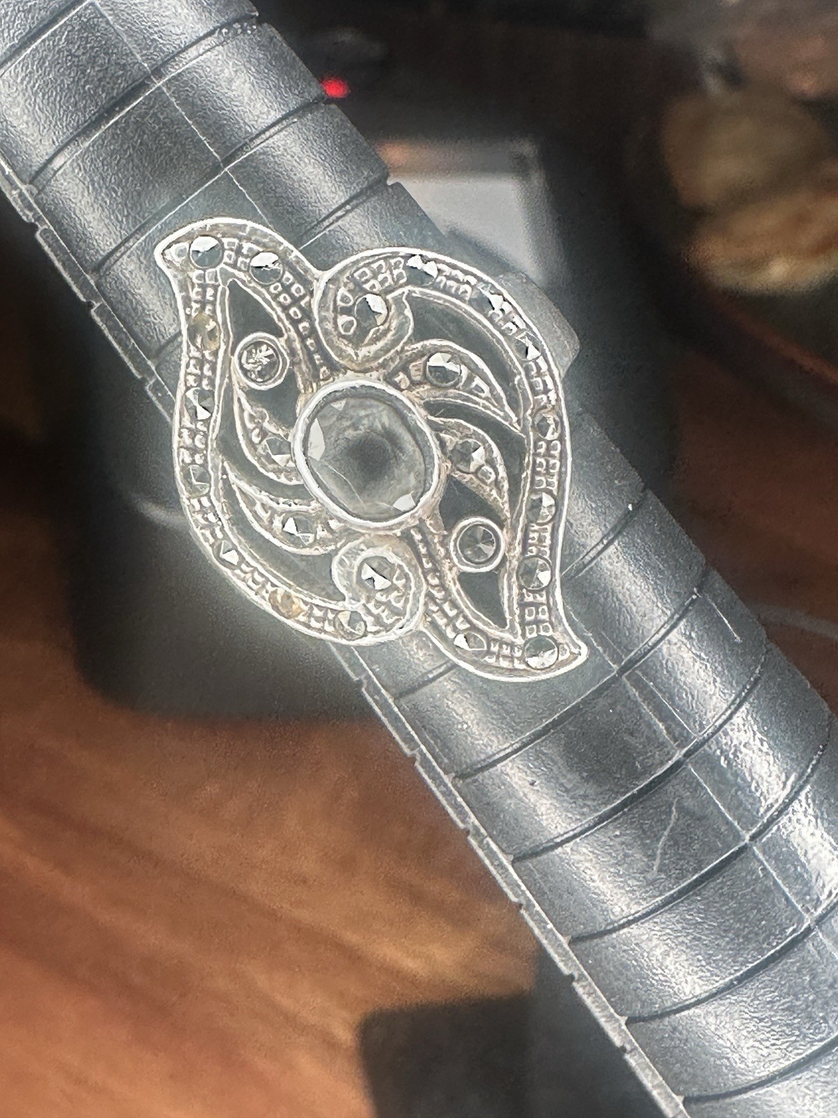 как выглядит 925 Sterling Silver Vintage Topaz Marcasite Gemstone Ring Size 6.75 фото