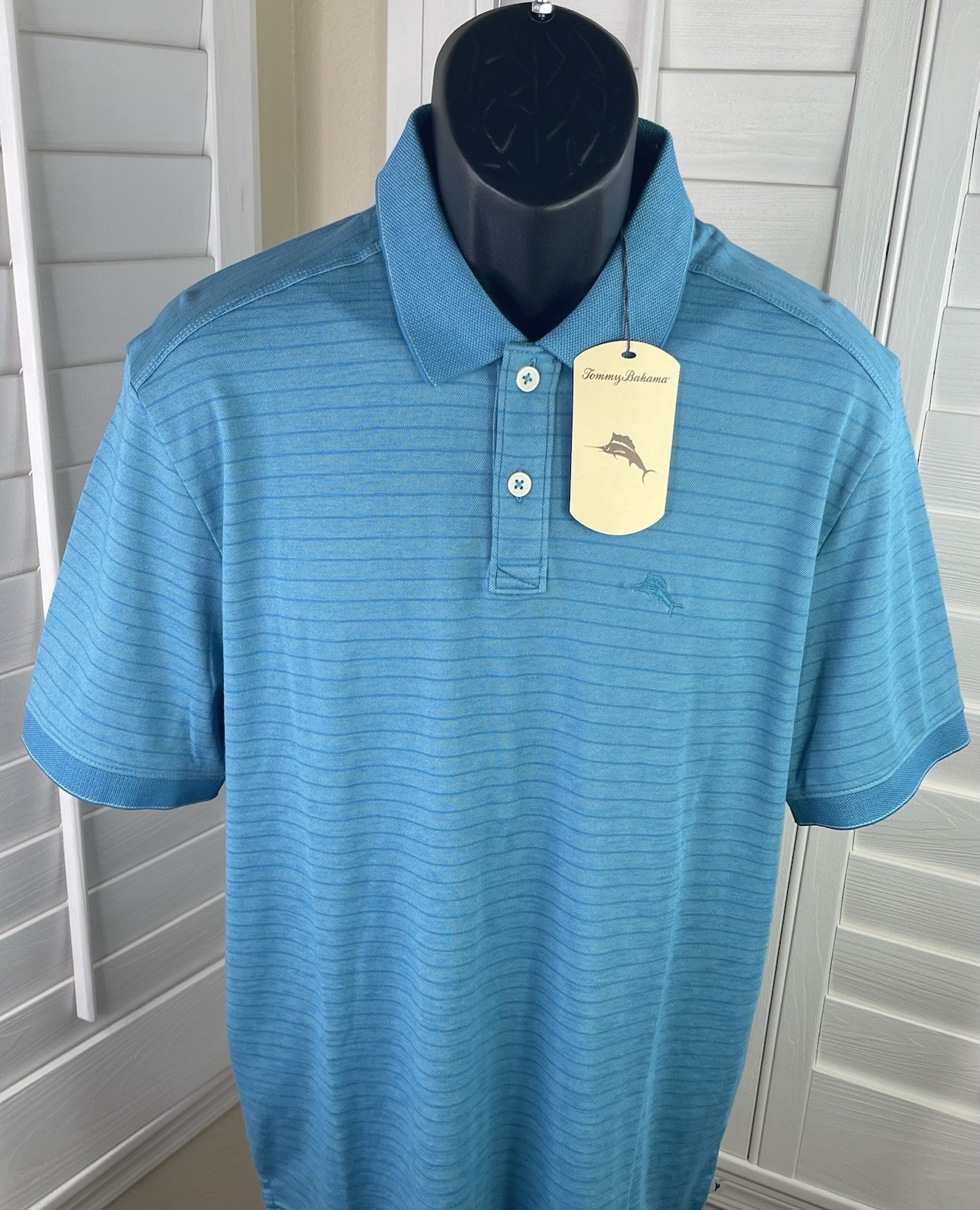 Tommy Bahama Striped Mosaic Blue Cotton Blend Polo Shirt, Men s Medium, NWT 99