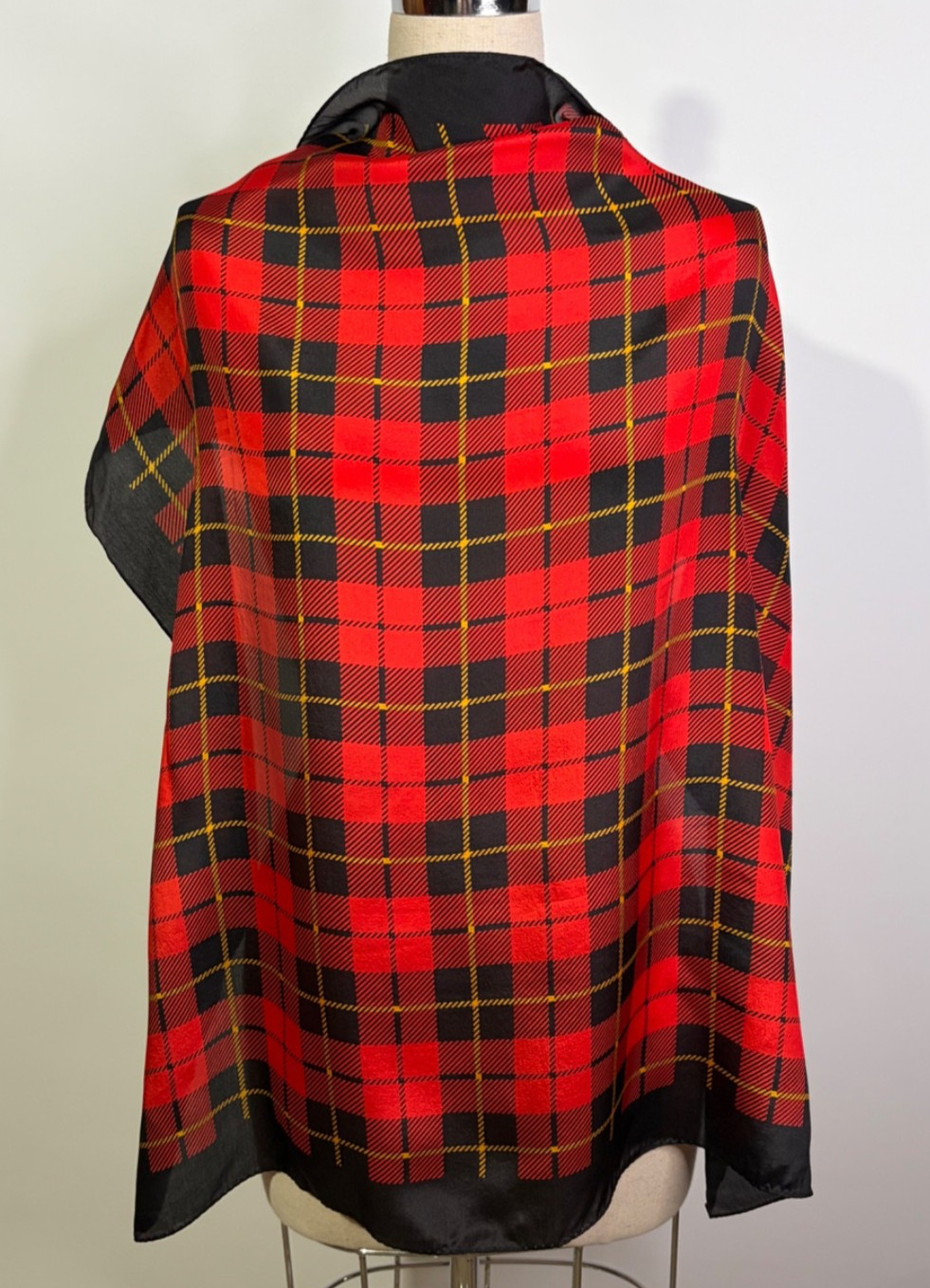 Red, Black Yellow Tartan Plaid Large Vintage Scarf/ Wrap