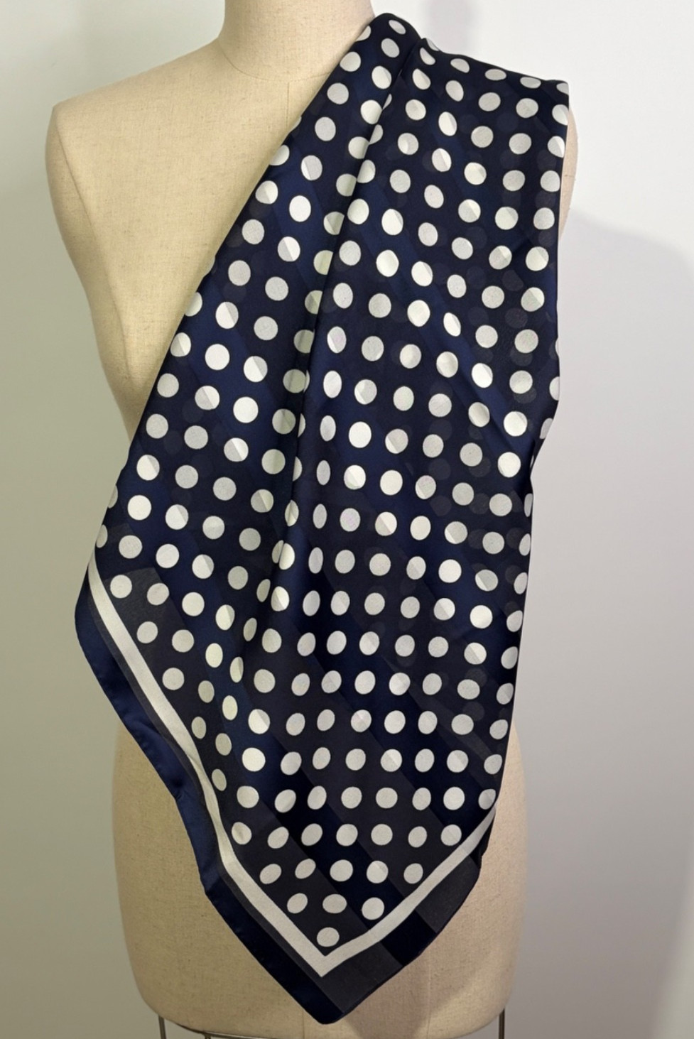 как выглядит White Dots W/ Blue Border Sheer Stripes Vintage Scarf/ Wrap- Made in Italy фото