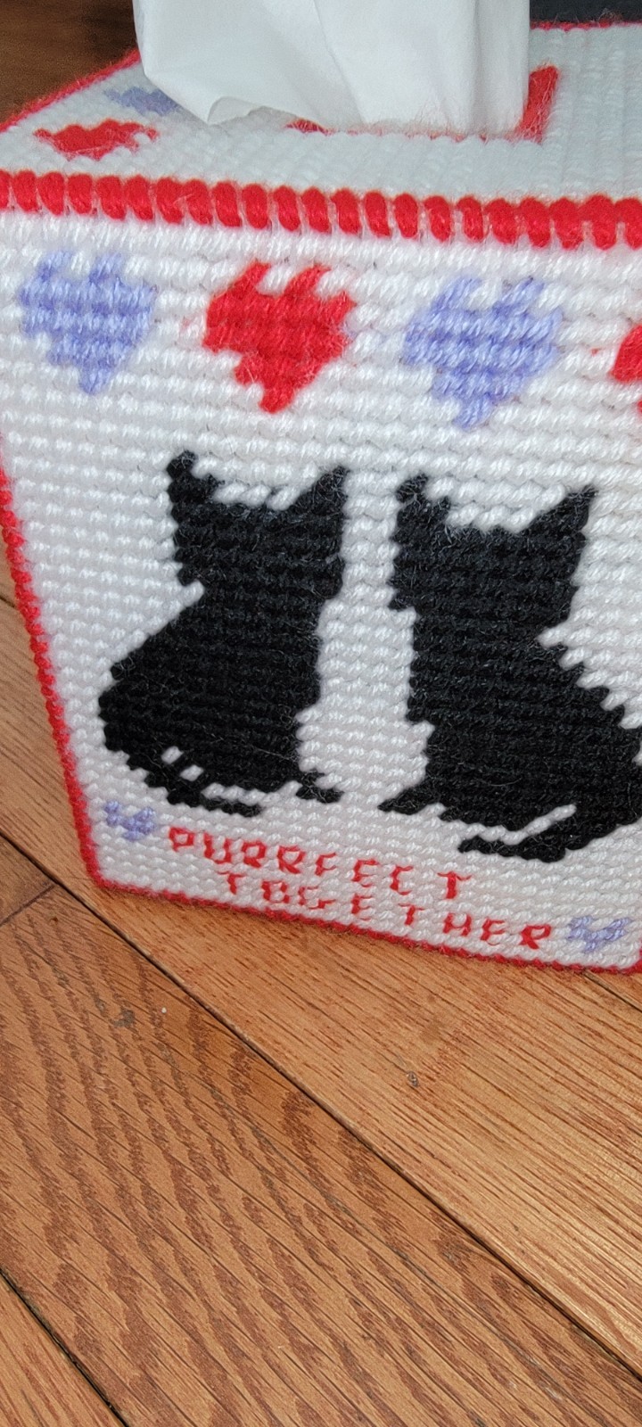 VALENTINE CATS TISSUE COVER OR DECOR - HANDMADE COMPLETED PROJECT