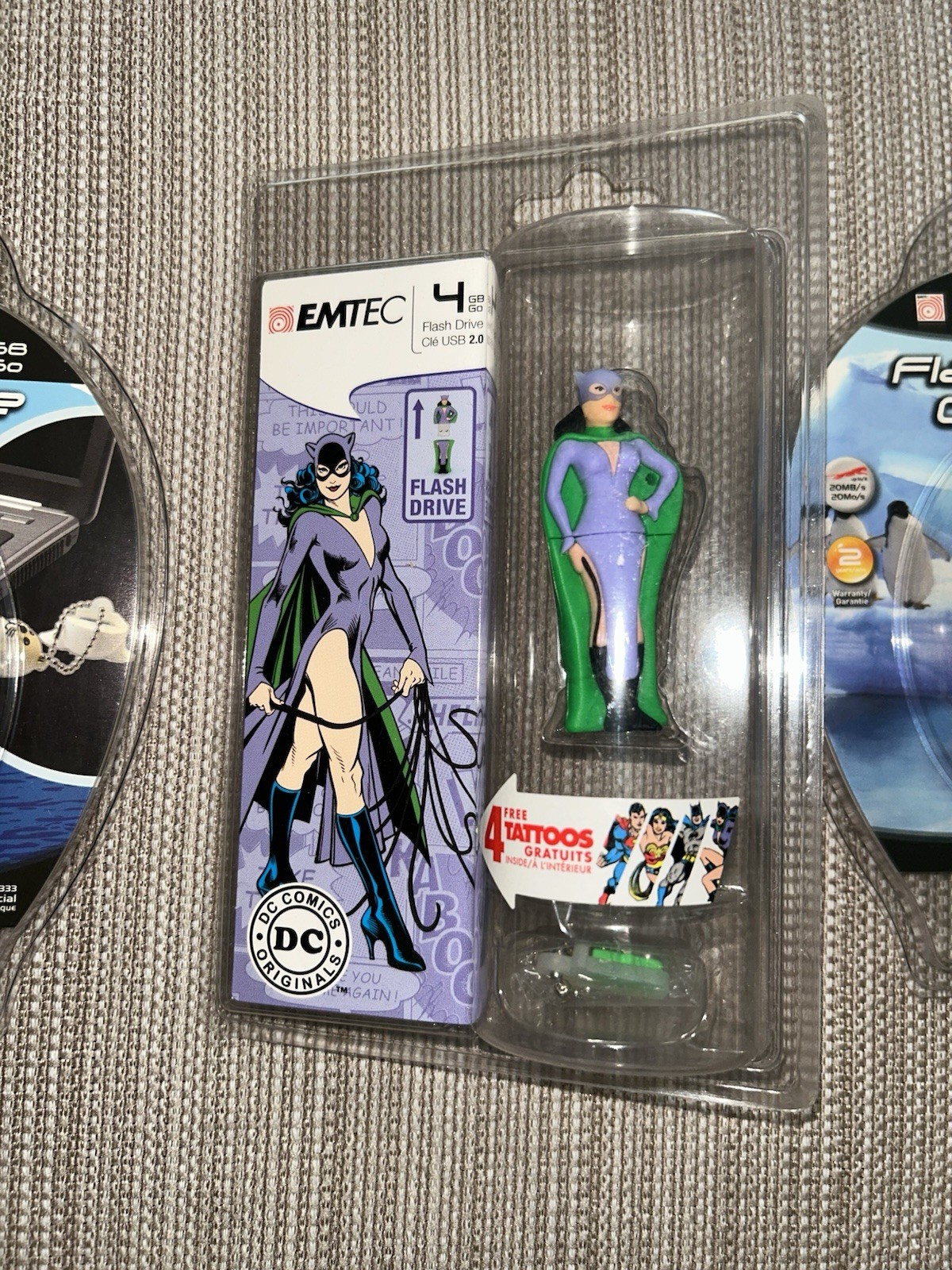 3 NEW Emtec Collectible USB Flash Drives 4GB Catwoman Penguin Ghost FREE SHIP