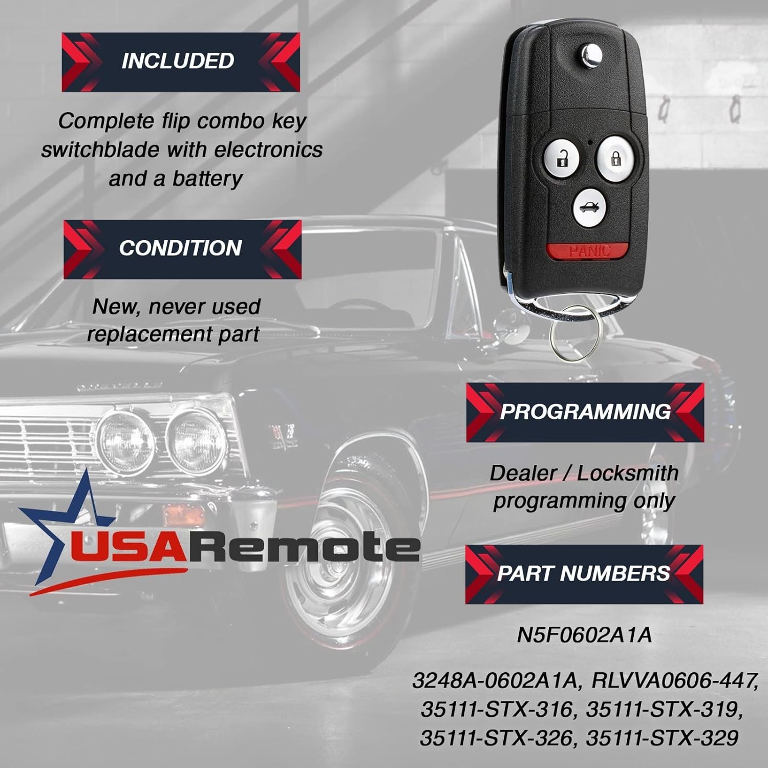 Car Key Fob Keyless Entry Flip Remote fits 2007-2013 Acura MDX RDX N5F0602A1A ,