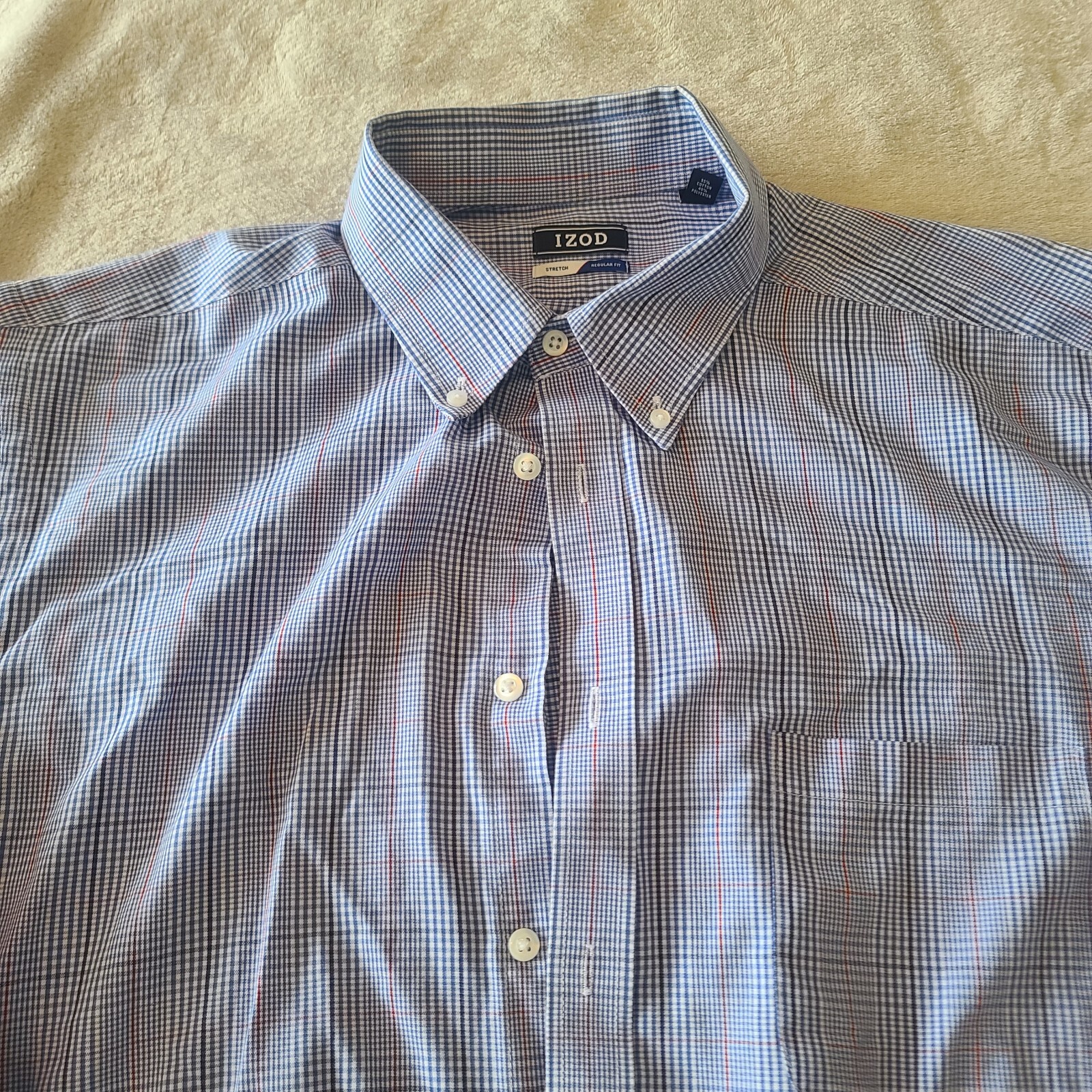 как выглядит Izod Mens Extra Large Blue Stripe Button Up Dress Shirt Casual фото