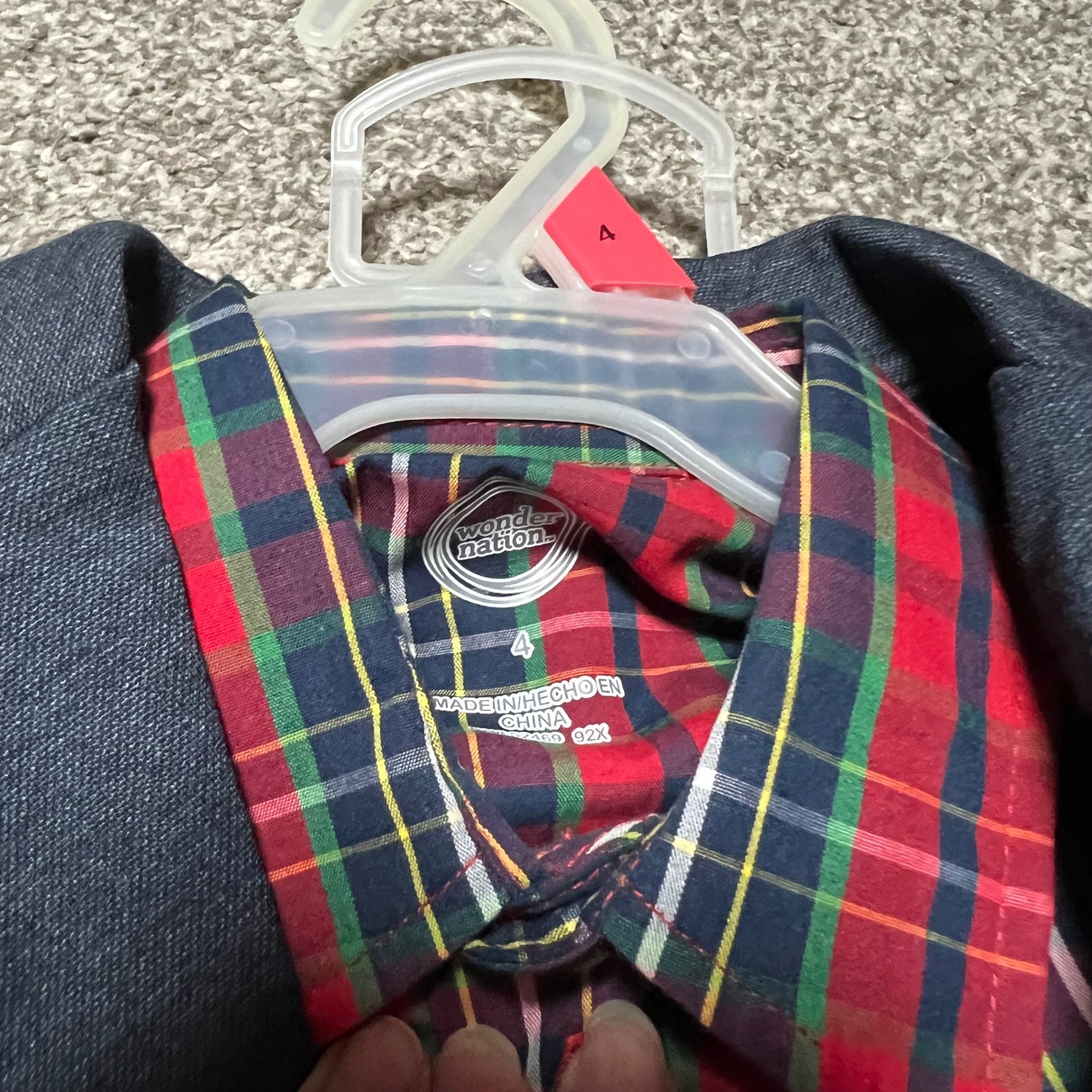 Wonder Nation Boys 3 Piece Suit Dress Set Navy Blazer Plaid Khaki Pants Size 4