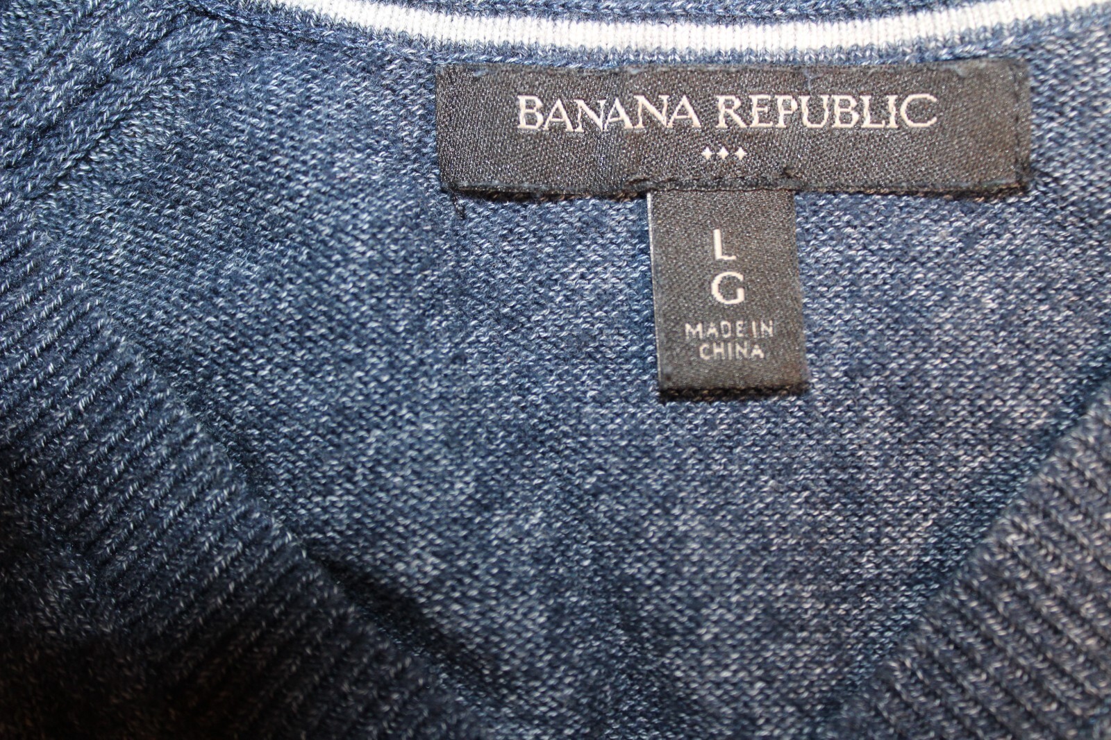как выглядит Mens Banana Republic V-Neck Sweater Pullover Knit Large Dark Blue Heather Cotton фото