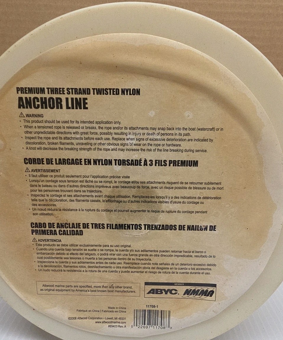 как выглядит Attwood Premium 150 x 3/8" White Nylon Twisted Anchor Line w/ Snap Hook  New фото