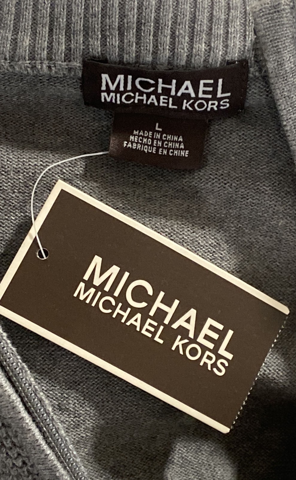 как выглядит Michael Kors Mens Gray Cotton Waffle Knit Quarter Zip Sweater NWT Sz L фото