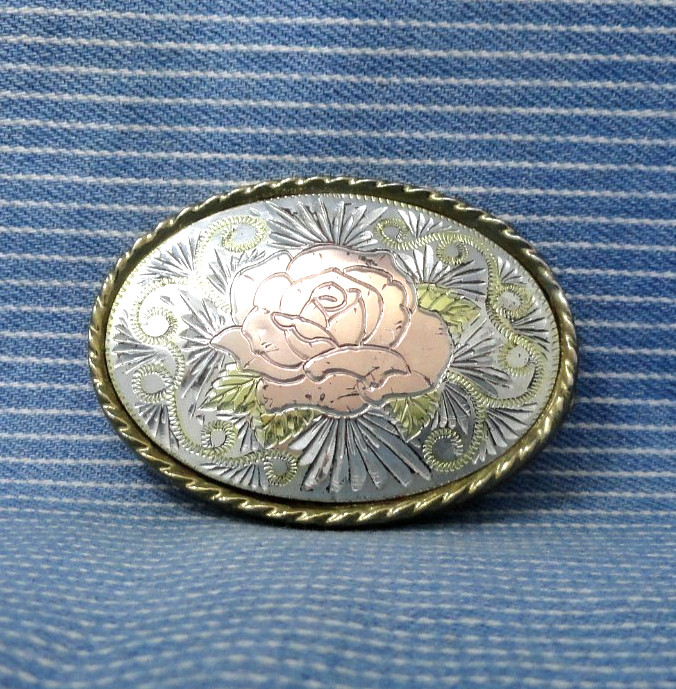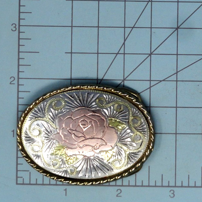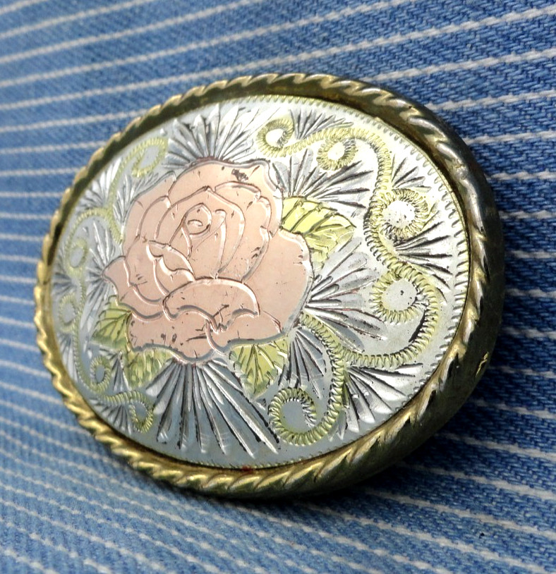 Cowgirl Western Rose Dress Belt Buckle Pressed Metal Inlay Vtg 80s W USA .CPA917