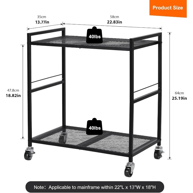 PC Tower Stand Metal Mobile CPU Holder Stand Cart w/Caster Wheels for Fax Office