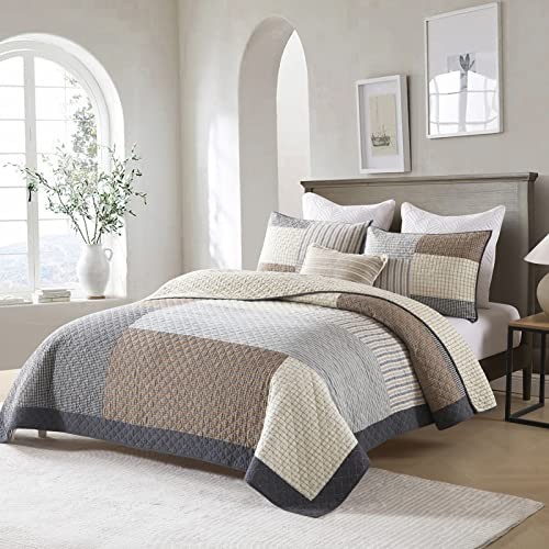 Quilt King Size 100 Cotton Lightweight Soft King 98x106 Brown/Beige/Gray