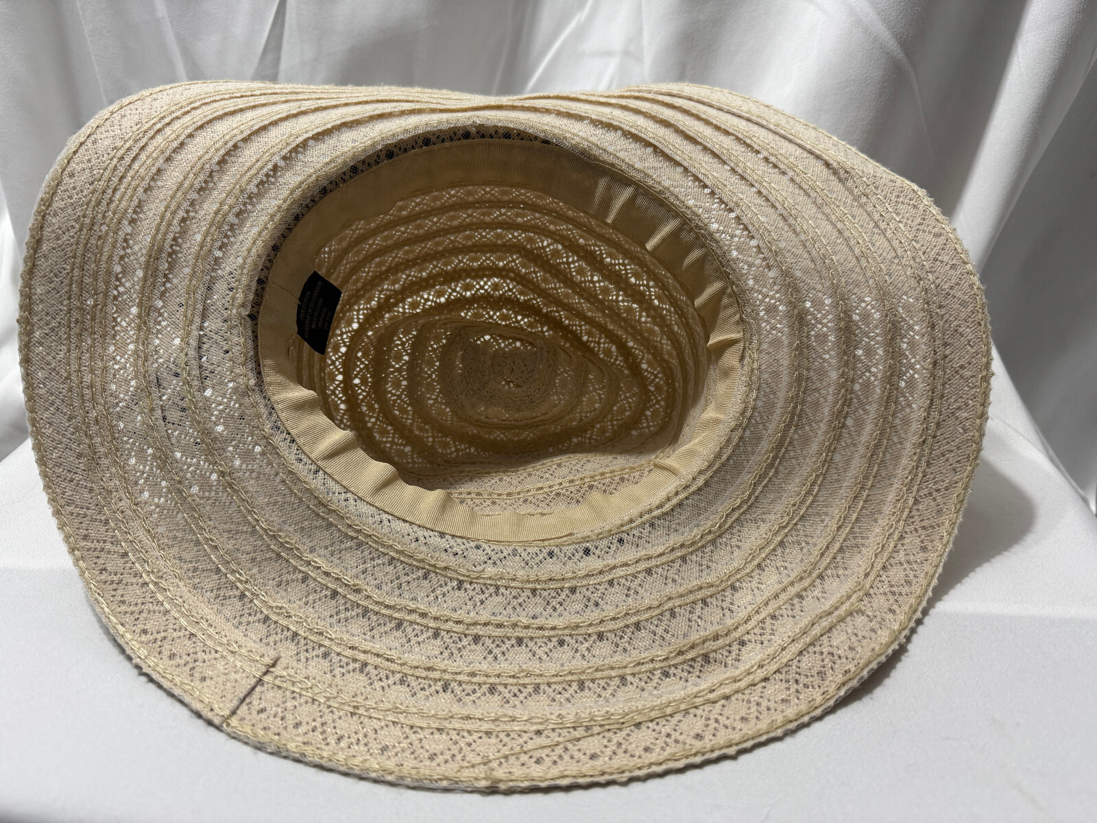 Hat Wide Brim Sun Womens Beige Cotton Brown Band One Size