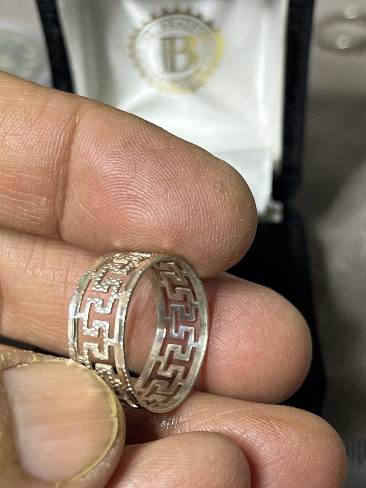 Sterling Silver Greek Key Design Band Ring Size 9