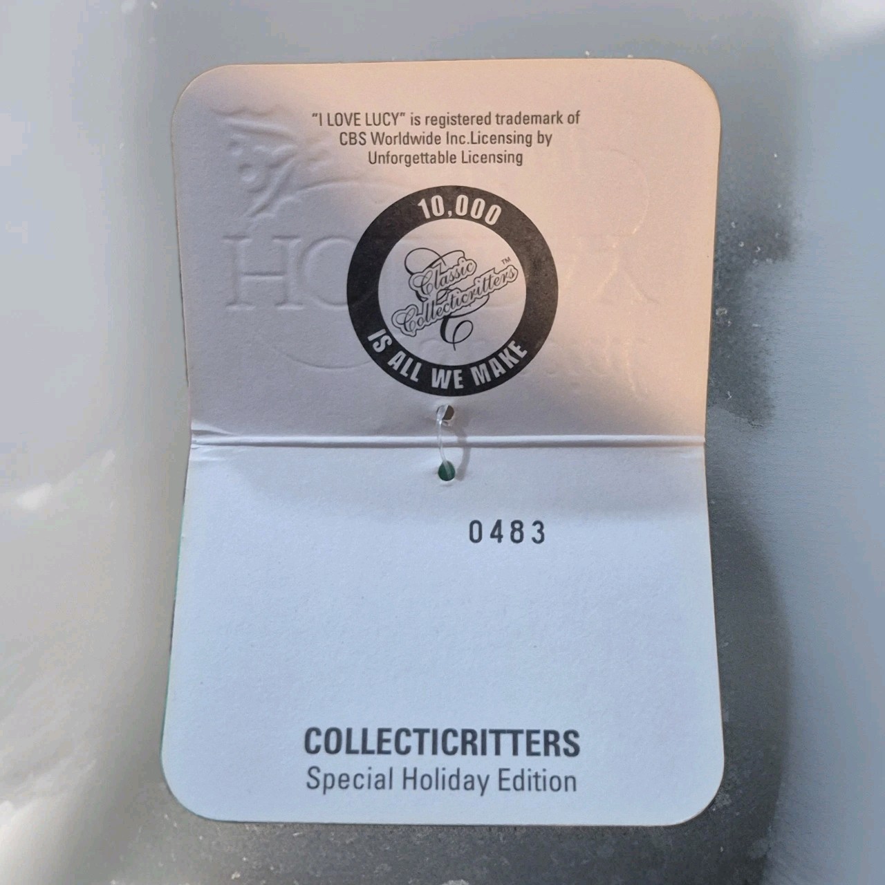 как выглядит COLLECTICRITTERS SPECIAL HOLIDAY EDITION BEAR/I LOVE LUCY 0483/GREEN/ NOS-NEW фото