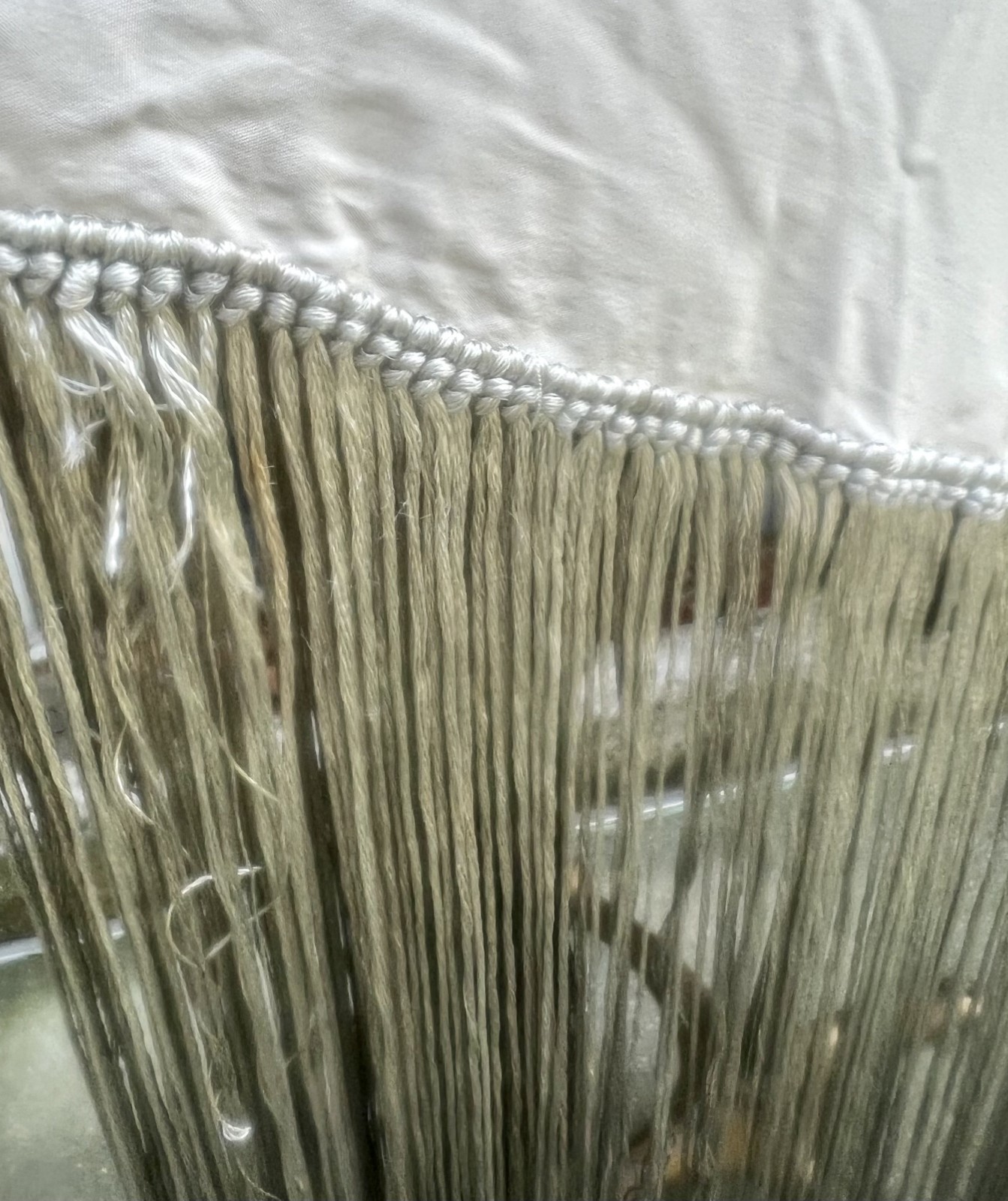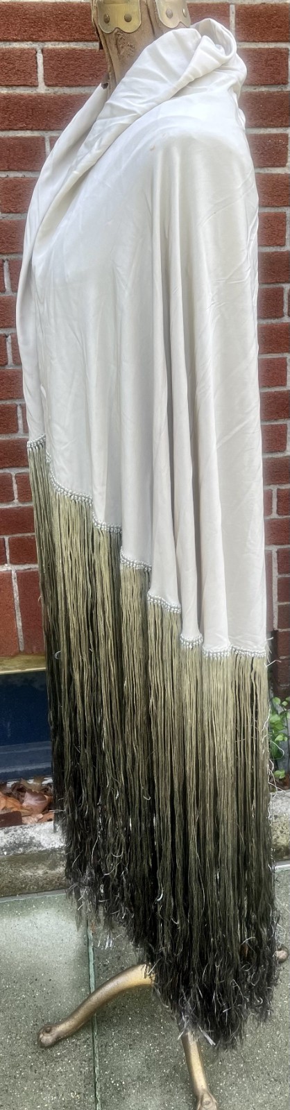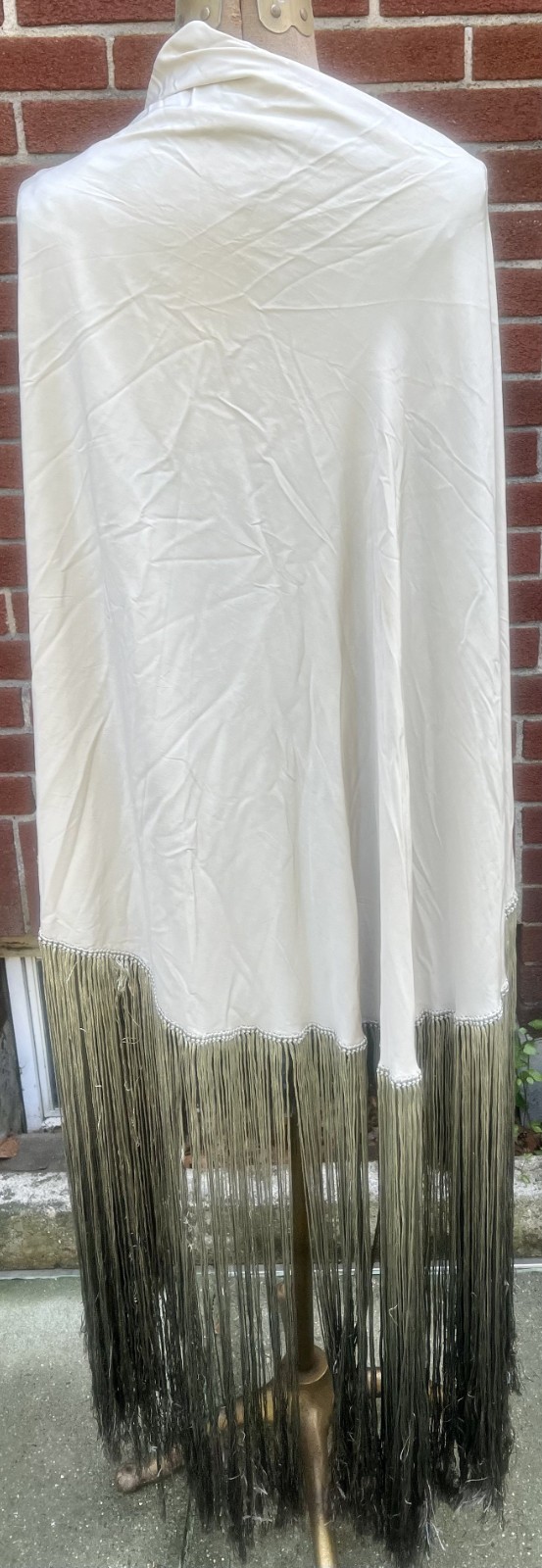 как выглядит VINTAGE 1920s LIGHT GRAY ROUND PIANO SHAWL W/ LONG OMBRE FRINGES фото