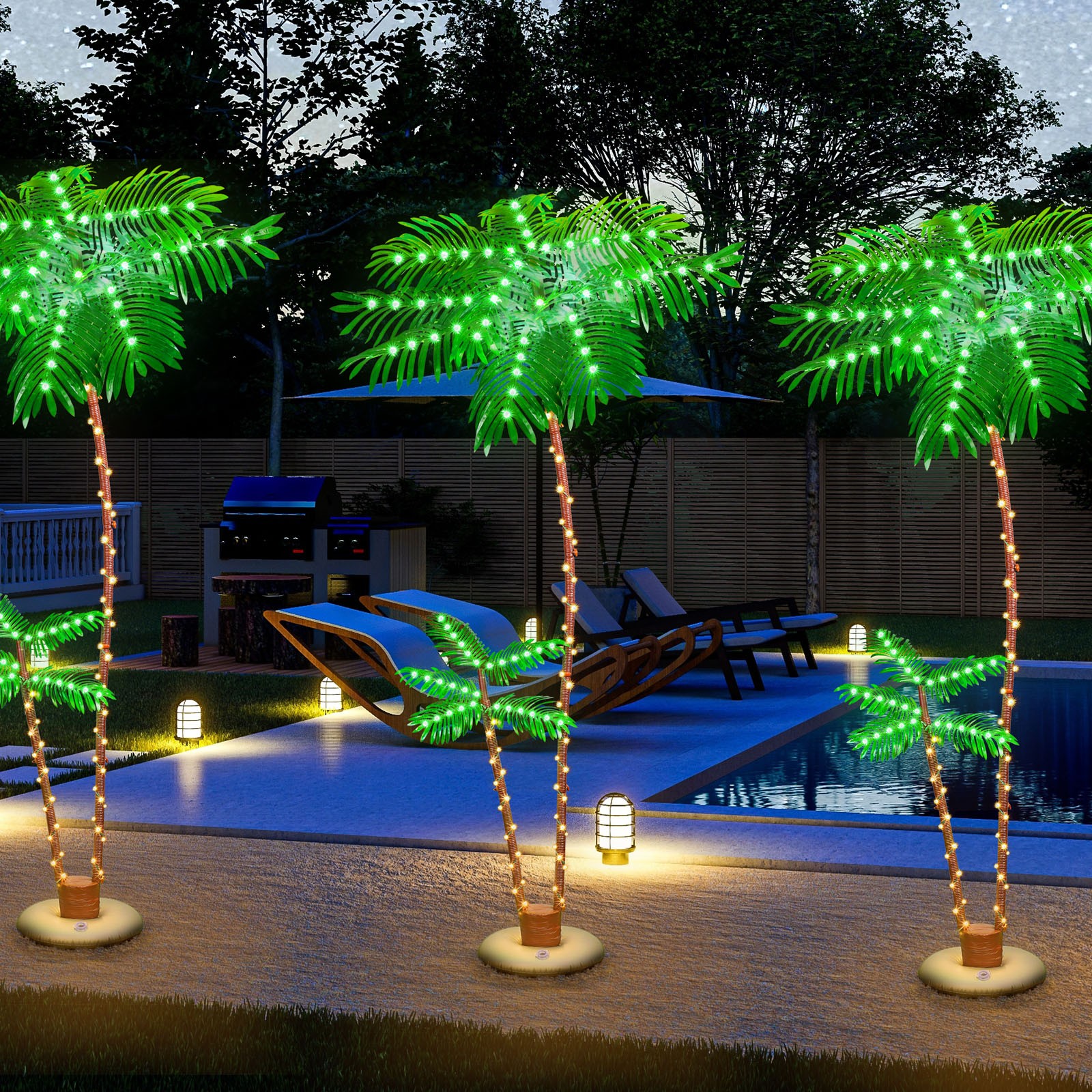 7ft Solar Lighted Palm Tree Artificial Fake Tree Lights Tiki Bar Pool Deck Decor