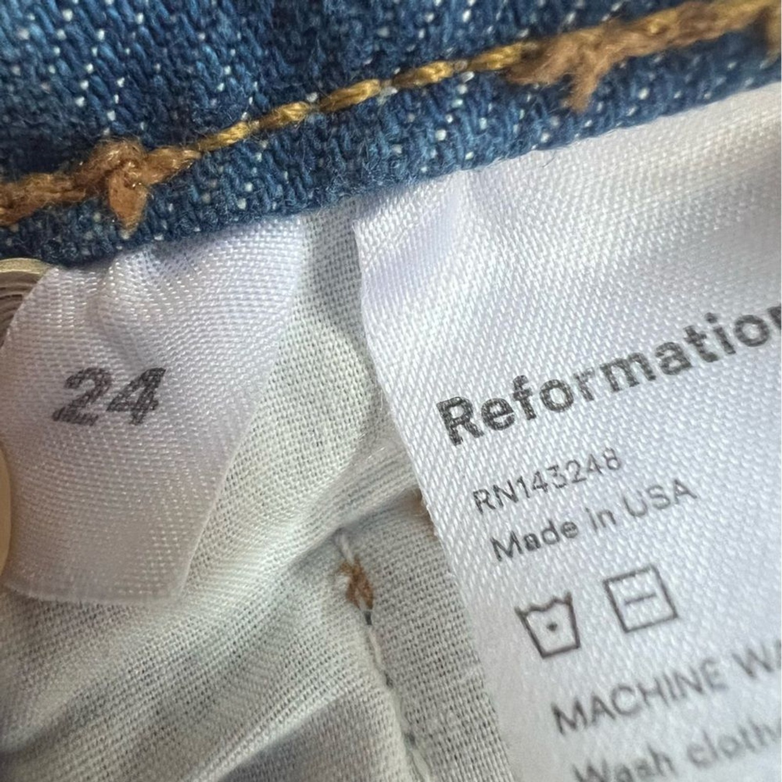 как выглядит Reformation Jeans Cynthia Button Fly High Rise Straight Jeans Blue Size 24 фото