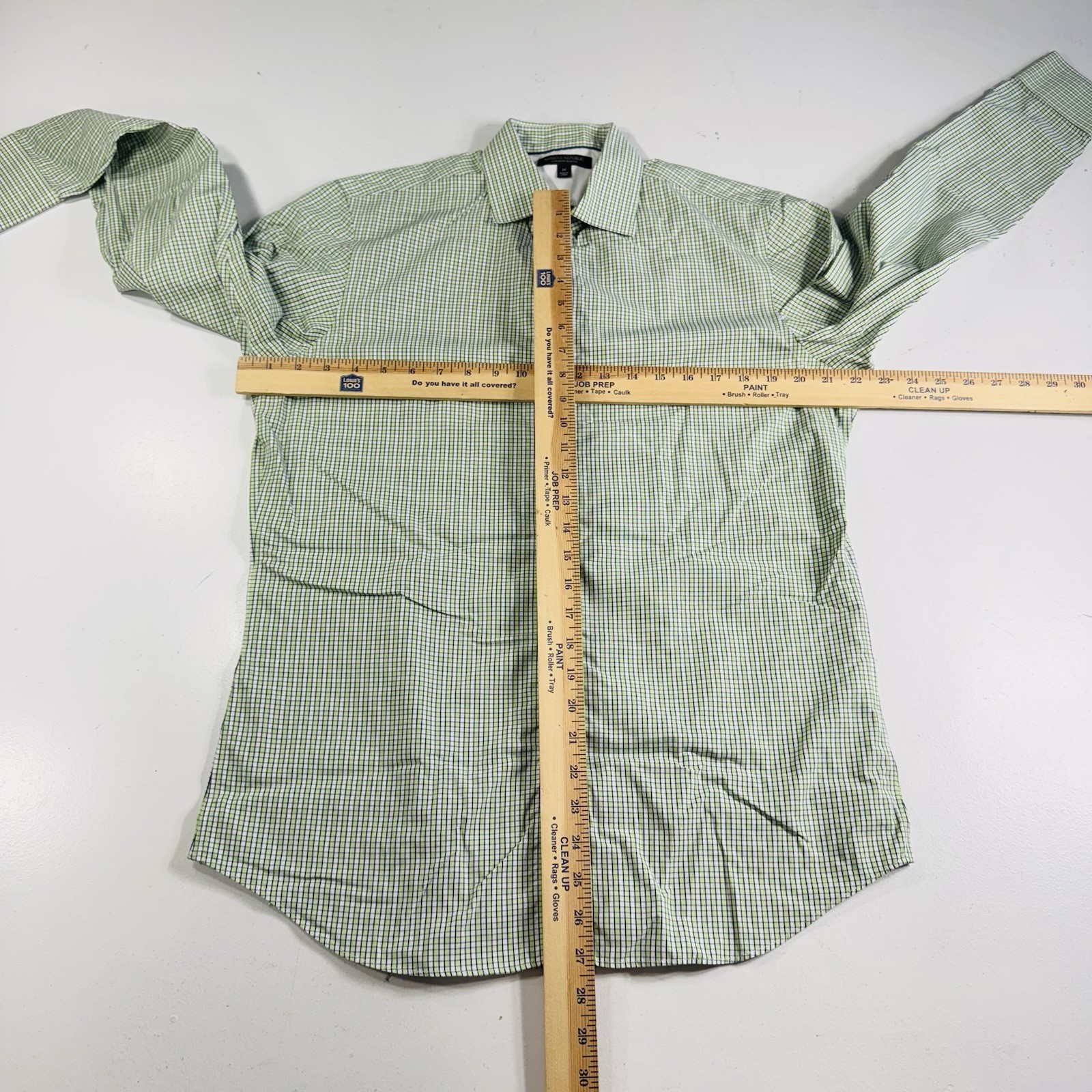 как выглядит Banana Republic Non Iron Slim Fit Shirt Green Plaid Long Sleeve Mens Size Medium фото