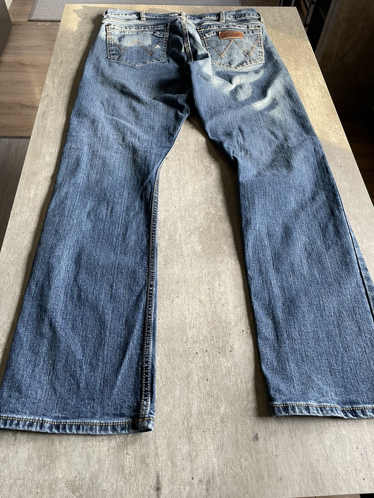 как выглядит Wrangler Retro Slim Boot Jeans Mens 35X34 Blue Western Cowboy Denim WLT77LY фото