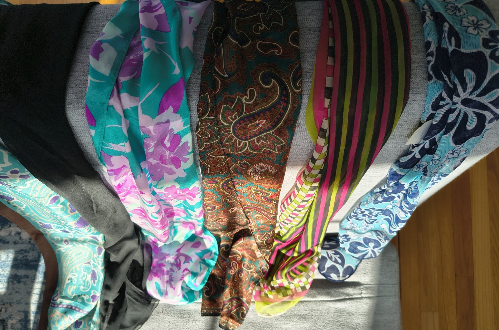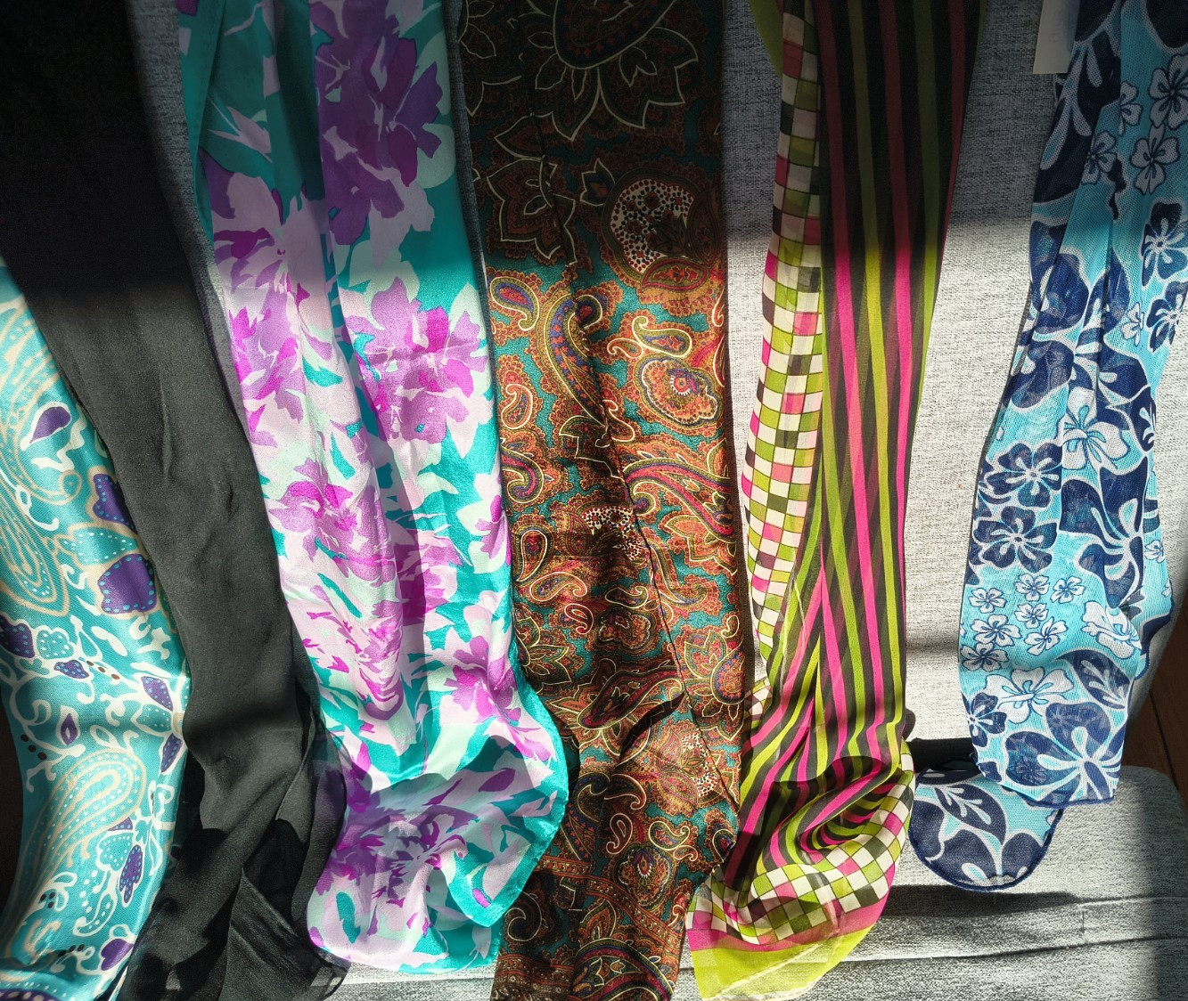 как выглядит Lot of 12 Vintage Scarves Various Sizes Colors and Patterns фото