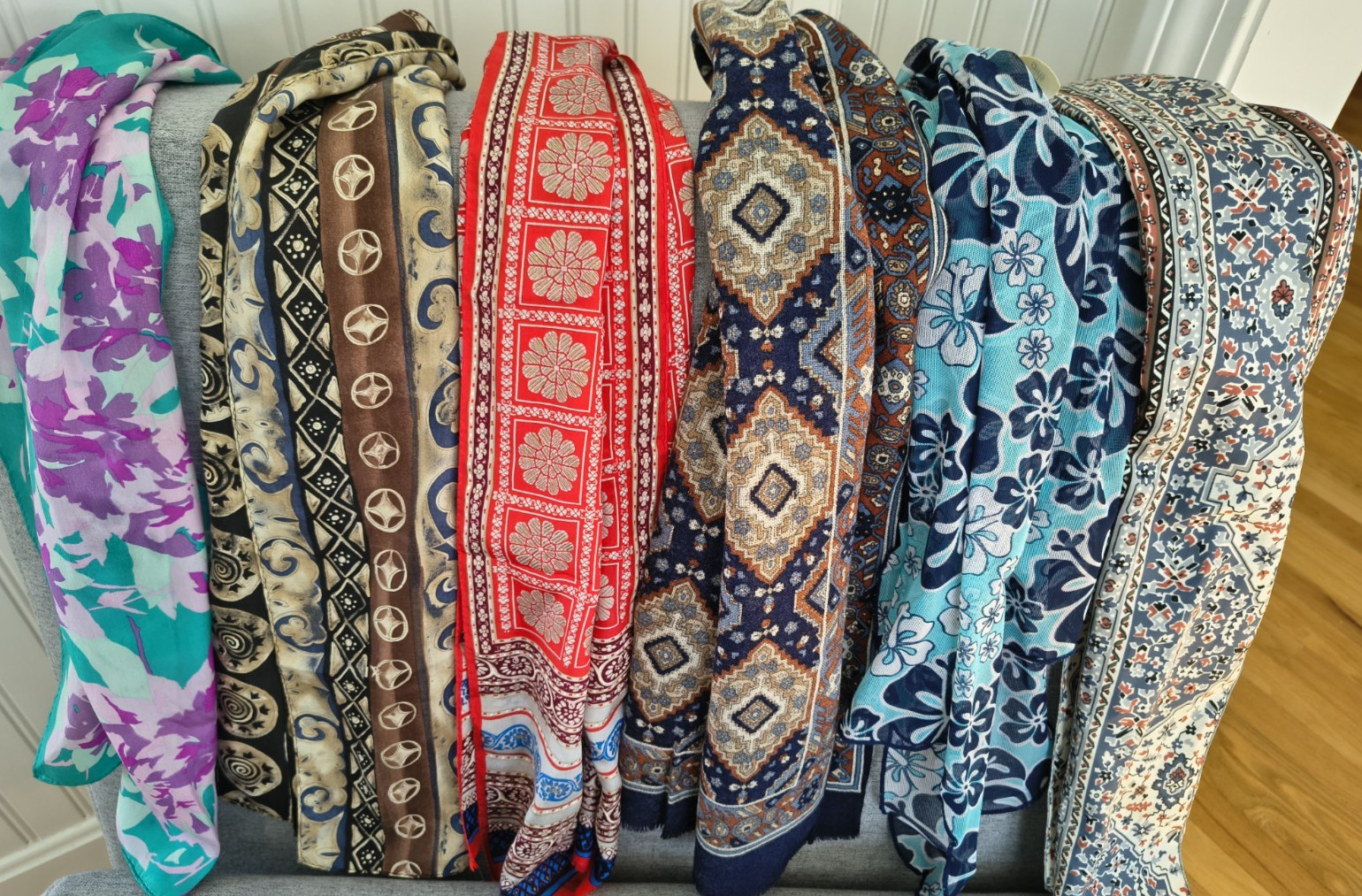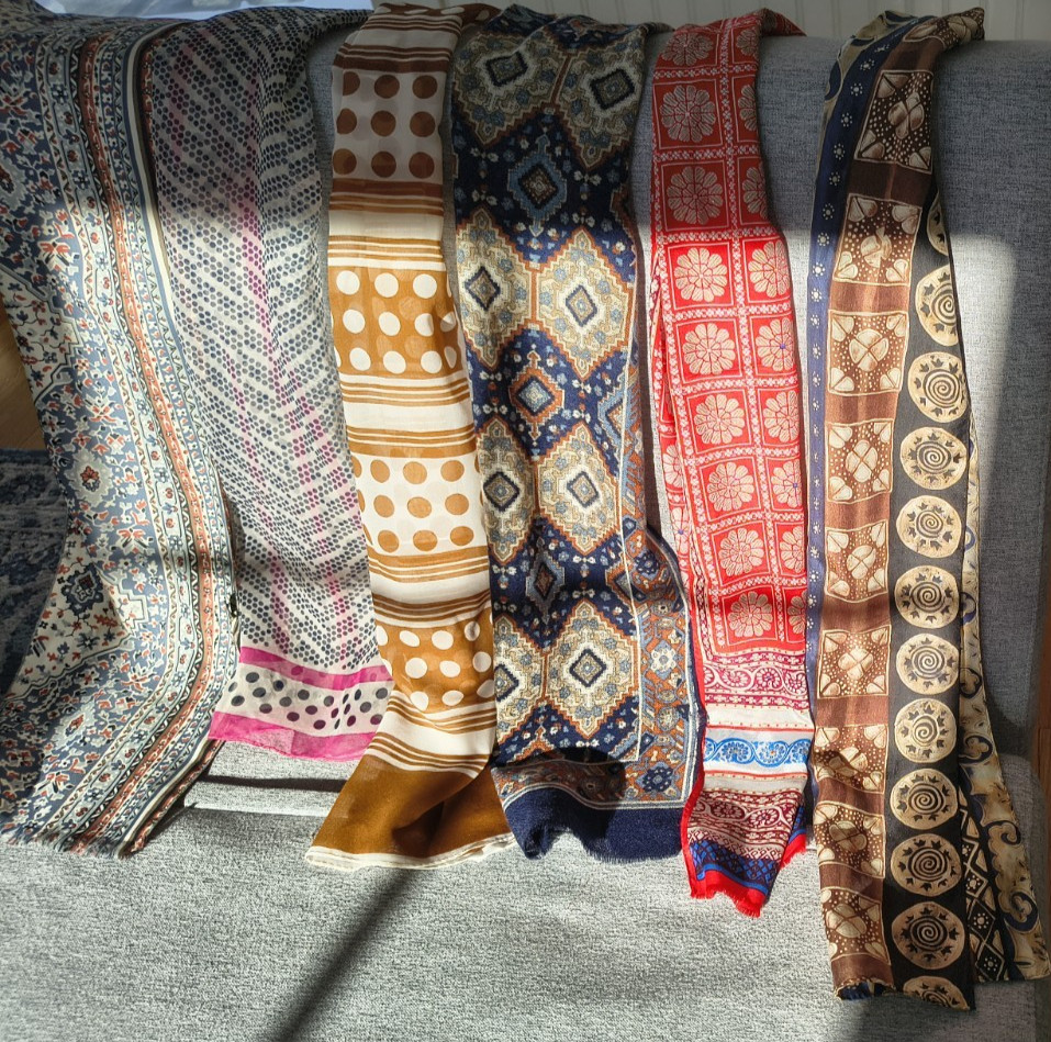 Lot of 12 Vintage Scarves Various Sizes Colors and Patterns