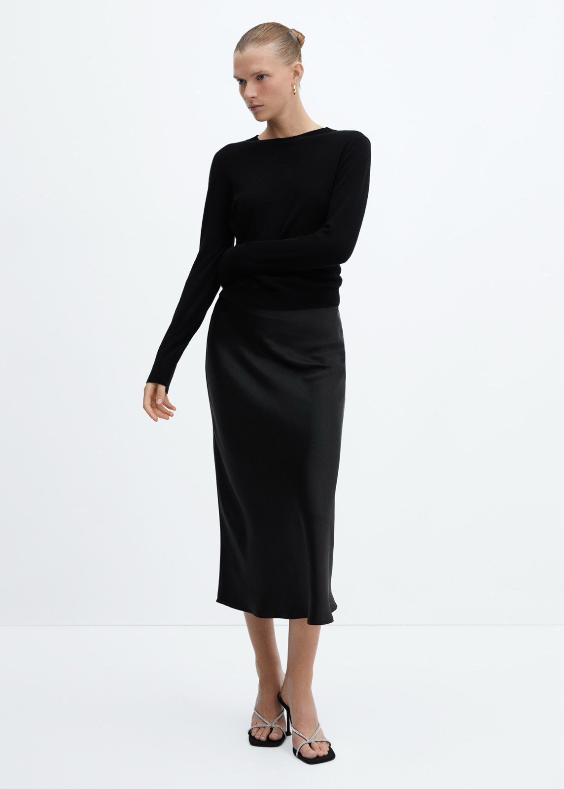 как выглядит 79 New Mango MNG Midi Satin Skirt In Black Size XS фото