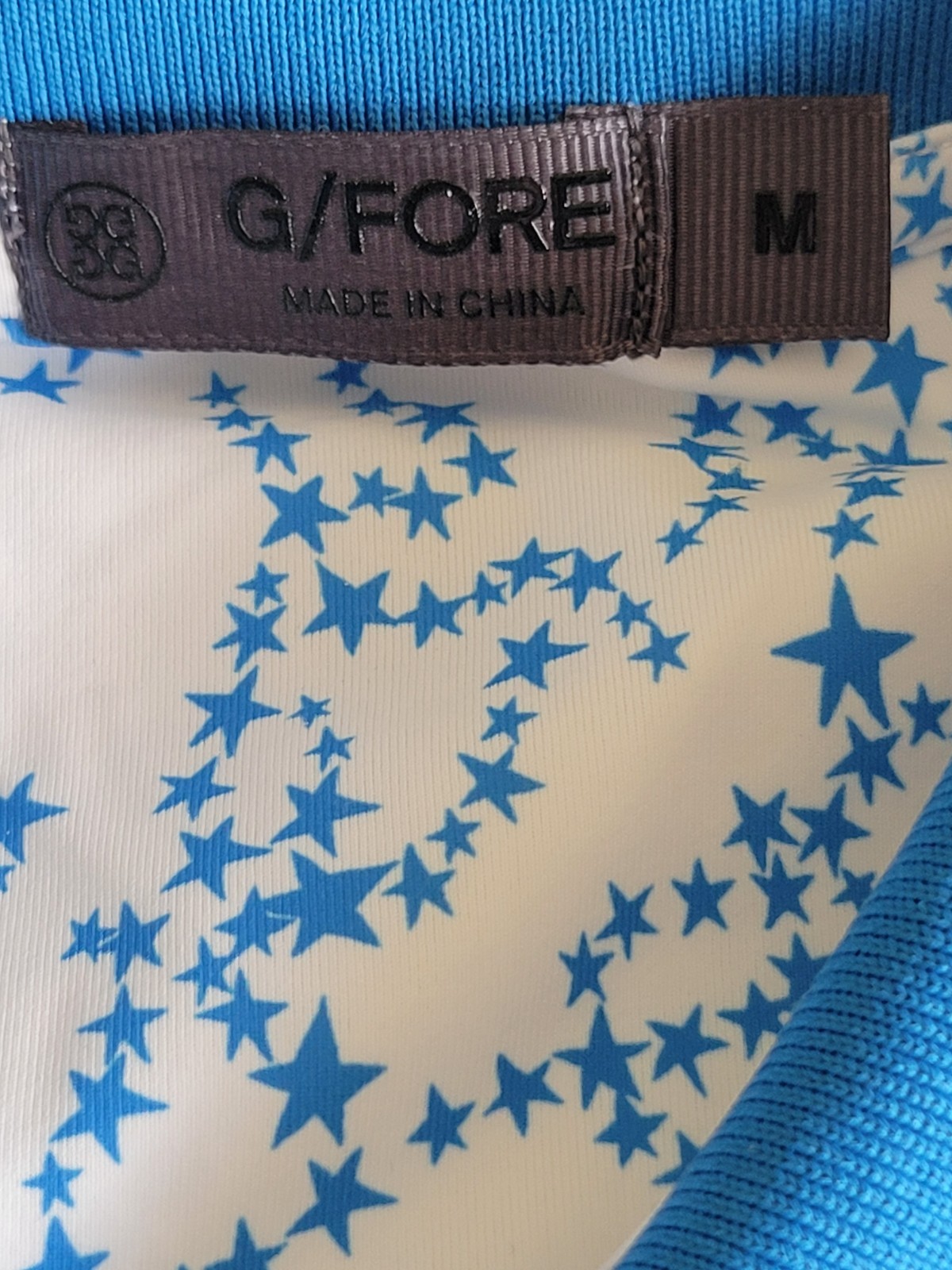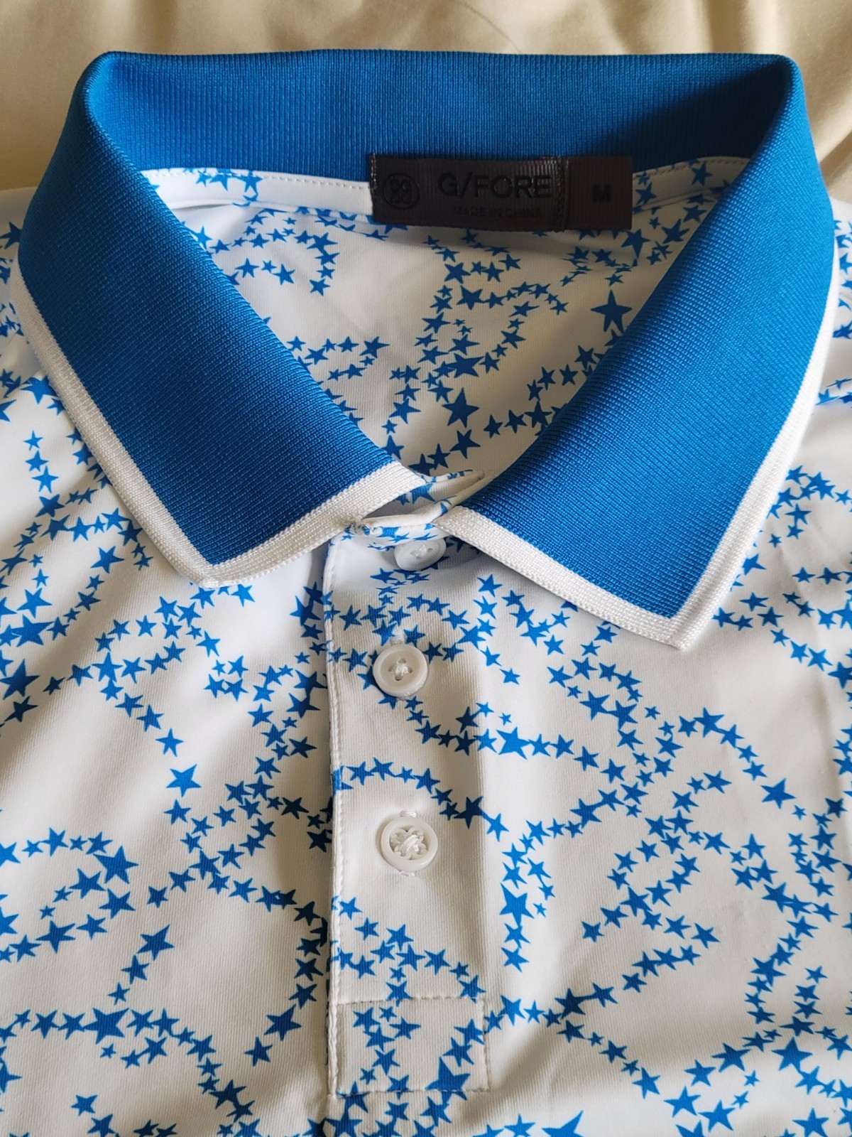 как выглядит G Fore White W/Blue Stars Performance Stretch Golf Short Sleeve Polo Mens Size M фото