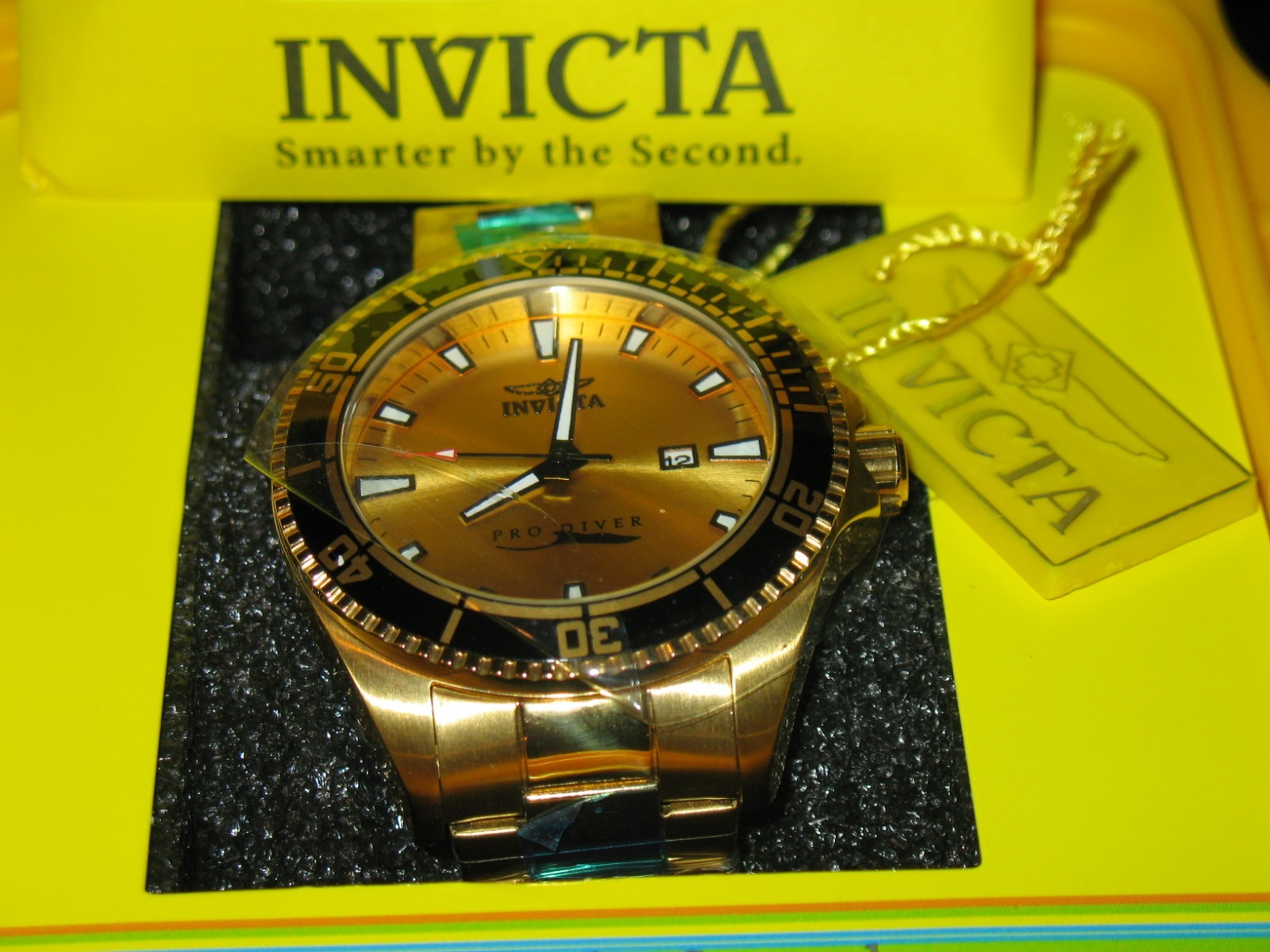 Invicta Pro Diver Gold Tone Men s Watch 15186 BRAND NEW WITH PLASTIC COVERS 100M