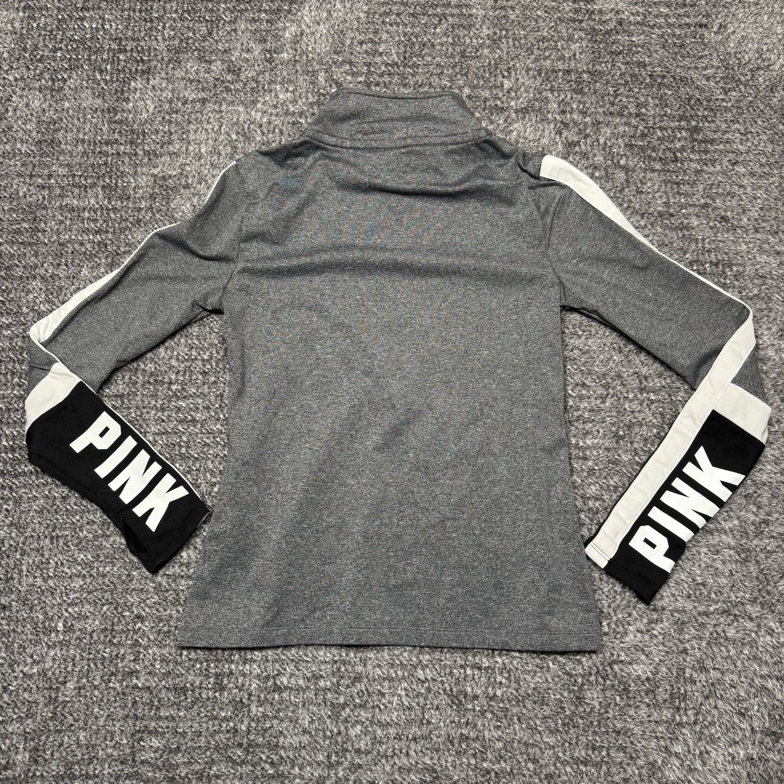 как выглядит VICTORIAS SECRET PINK "PINK" ULTIMATE 1/2 ZIP TRACK JACKET WORKOUT GRAY SMALL фото