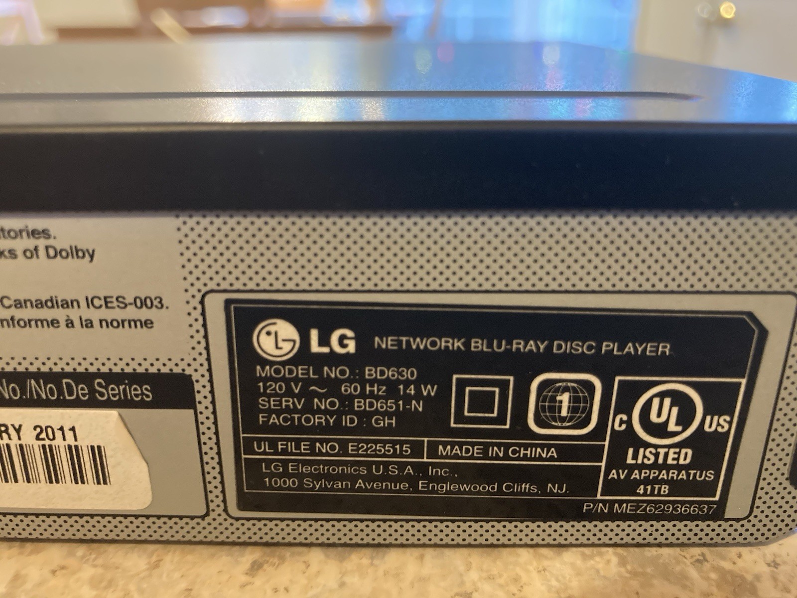 Модель: LG BD630