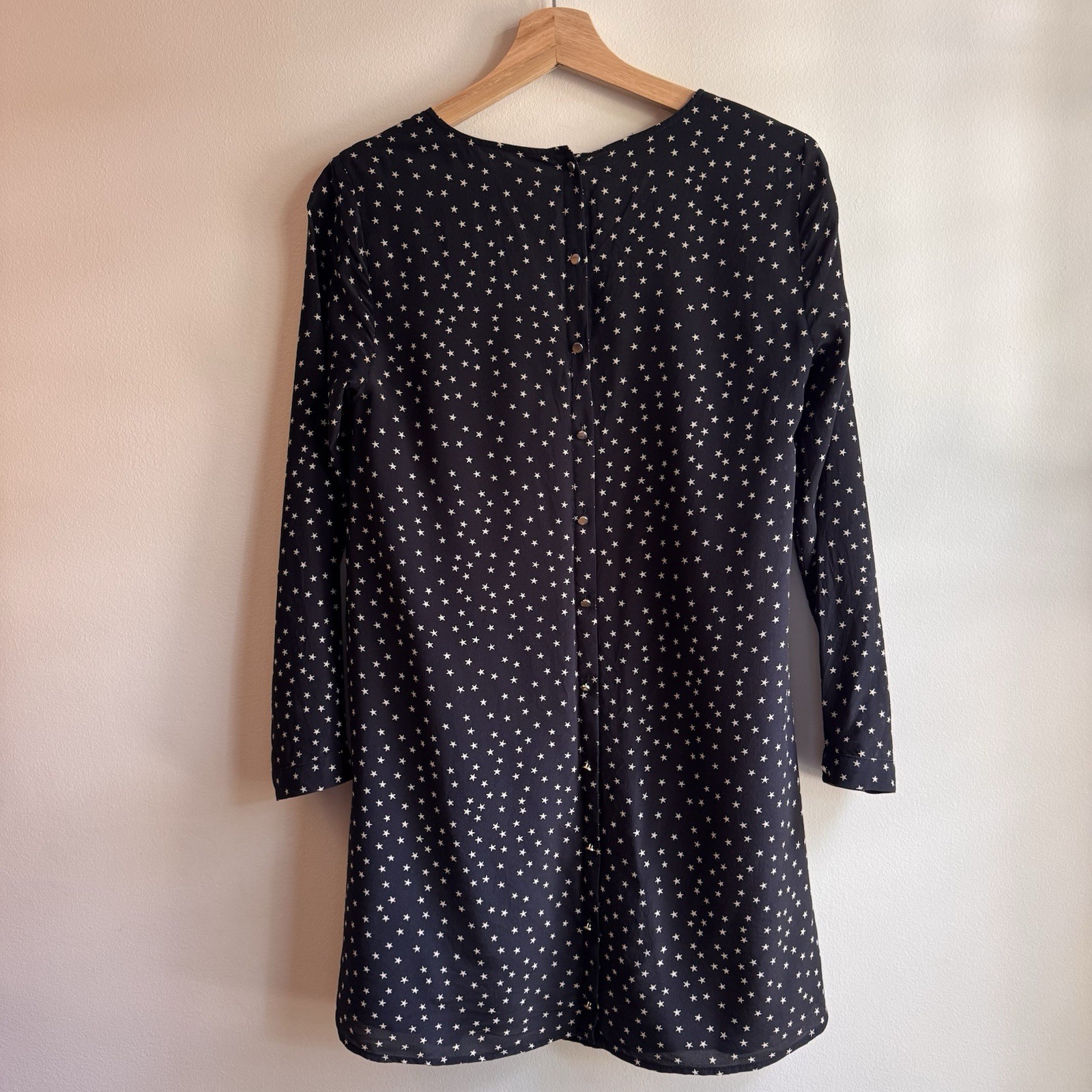 Madewell Star Print 100 Silk Long-Sleeved A-Line Dress Minimalist Black XXS