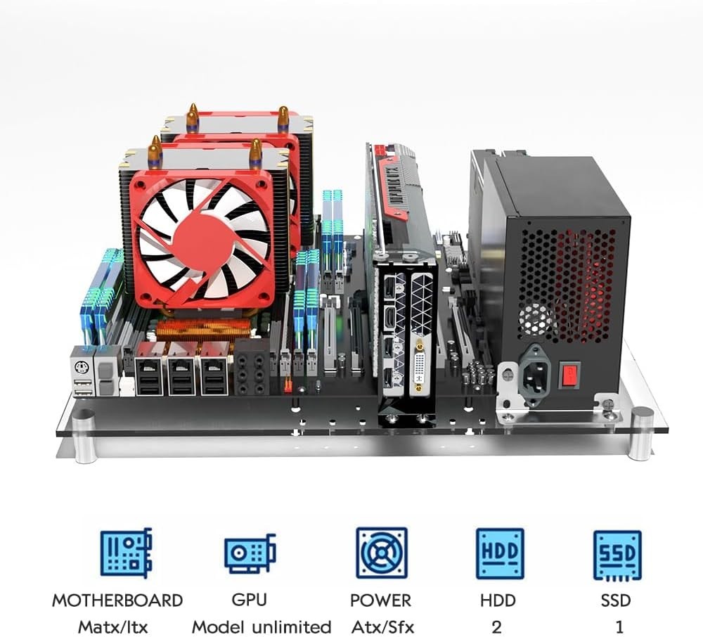 как выглядит Sleek Acrylic Open Frame PC Case for MATX ITX Motherboards  Air-Cooled Design фото