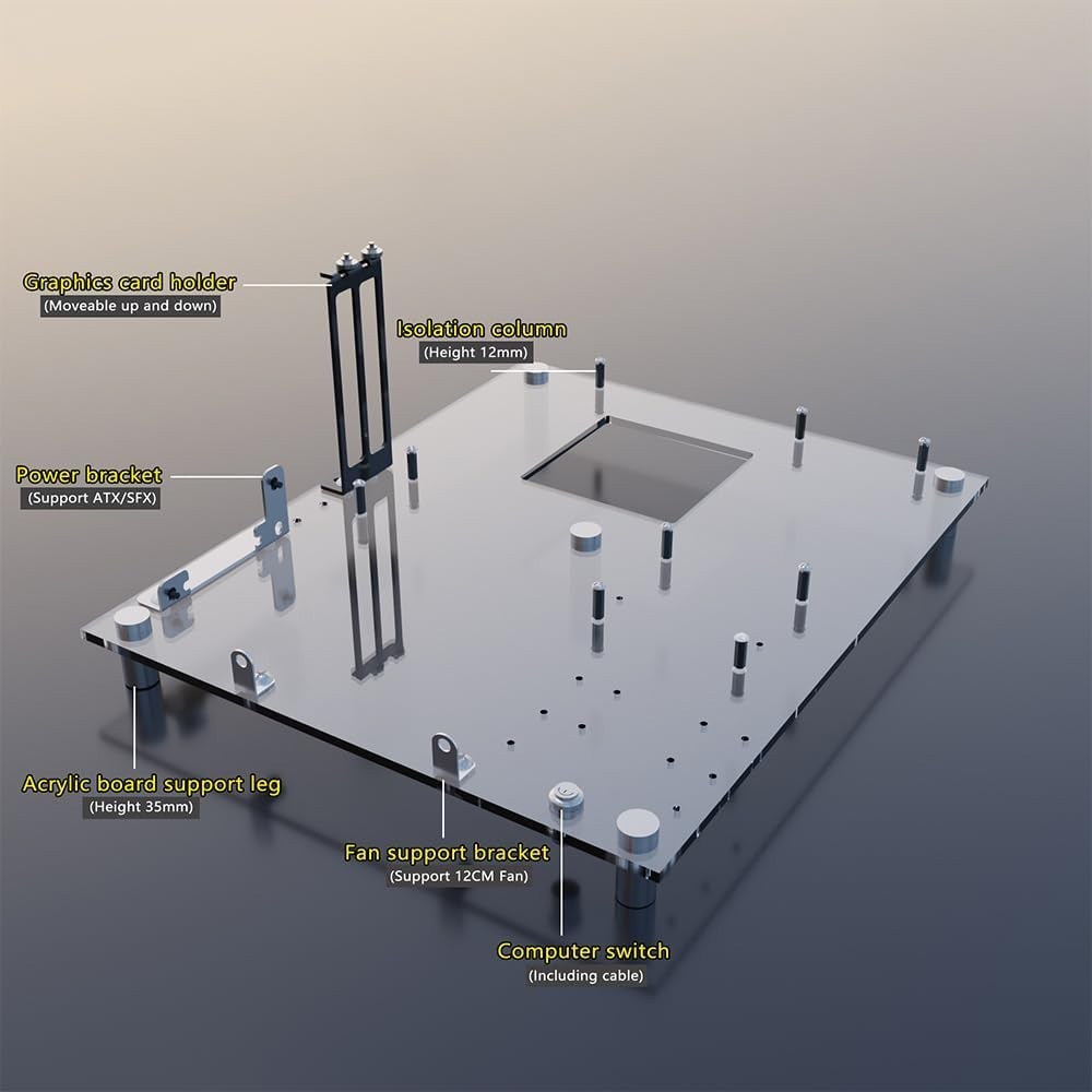 Sleek Acrylic Open Frame PC Case for MATX ITX Motherboards Air-Cooled Design
