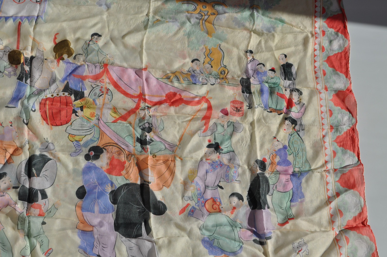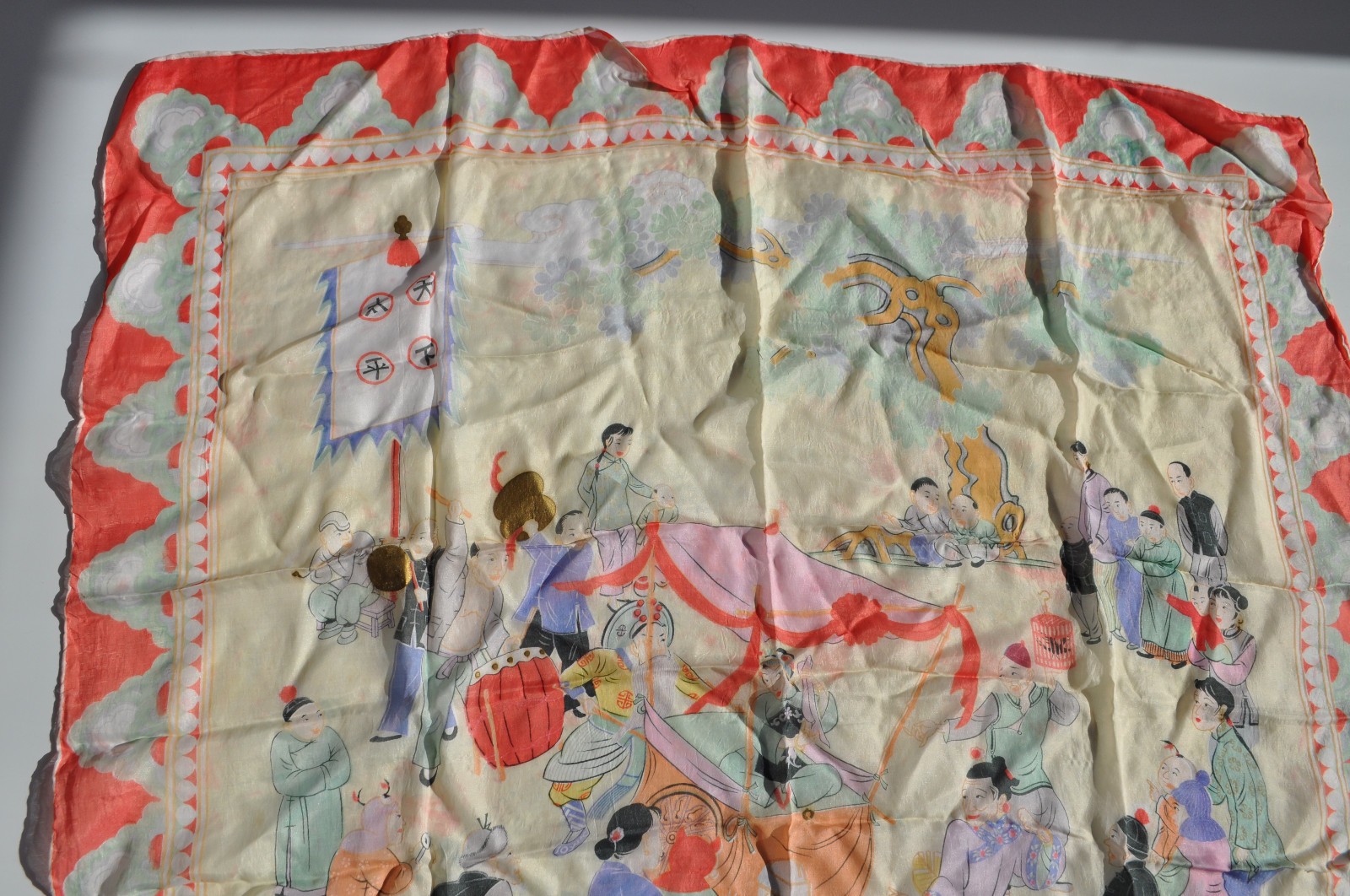 как выглядит Colorful Vintage Japanese "World Peace" Rayon/Silk 30" x 30" Scarf Village Scene фото