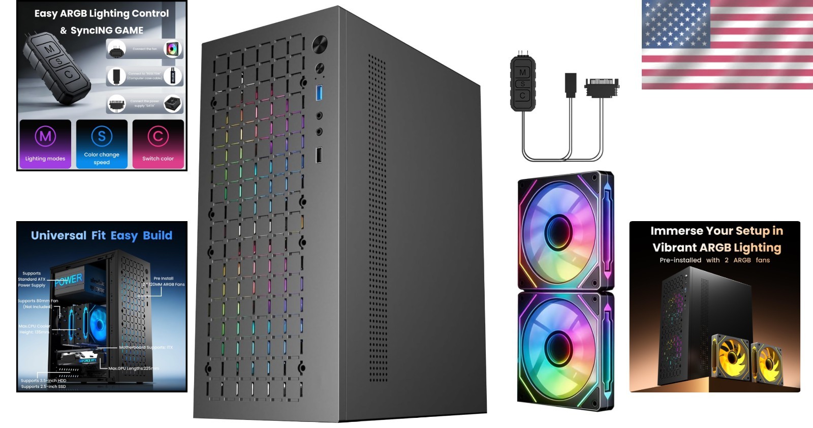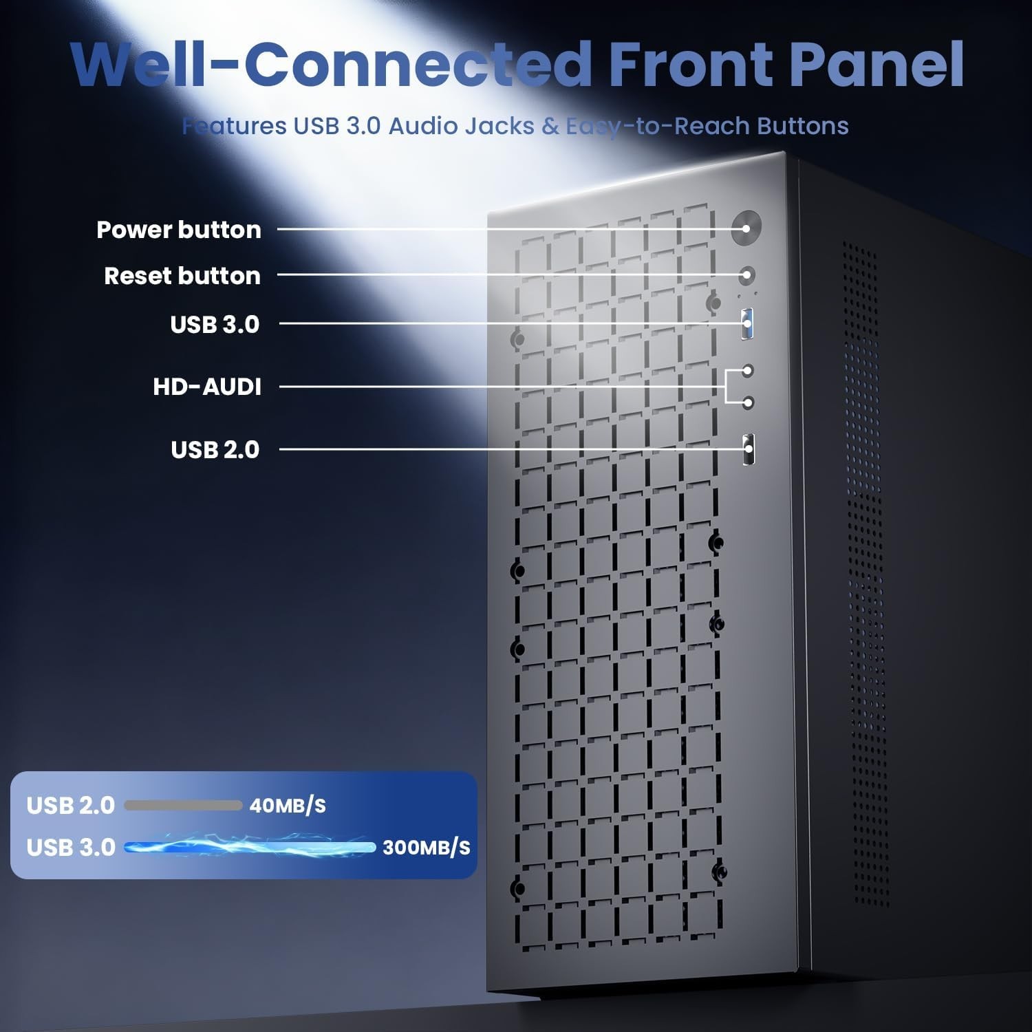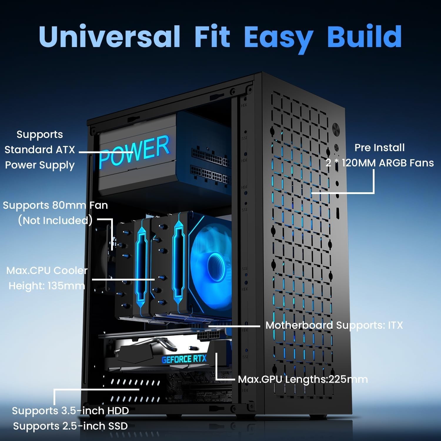 Mini-ITX Gaming Case with Customizable RGB Fans USB 3.0 - Space-Saving Size