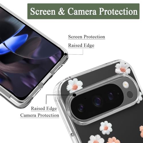 Case Compatible with Pixel 9 Pixel 9 Pro Case Clear with Design Daisy Blooms