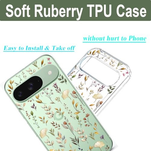 Case for Pixel 9 Pixel 9 Pro Case Clear with Design Soft TPU Golden Garden