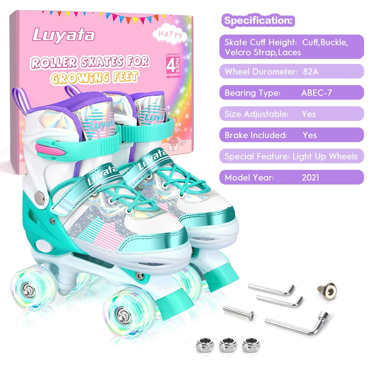 как выглядит Luyata Roller Skates for Girls Boys Adjustable, 4 Size Ages 6-12 3-5, Kids Rol фото