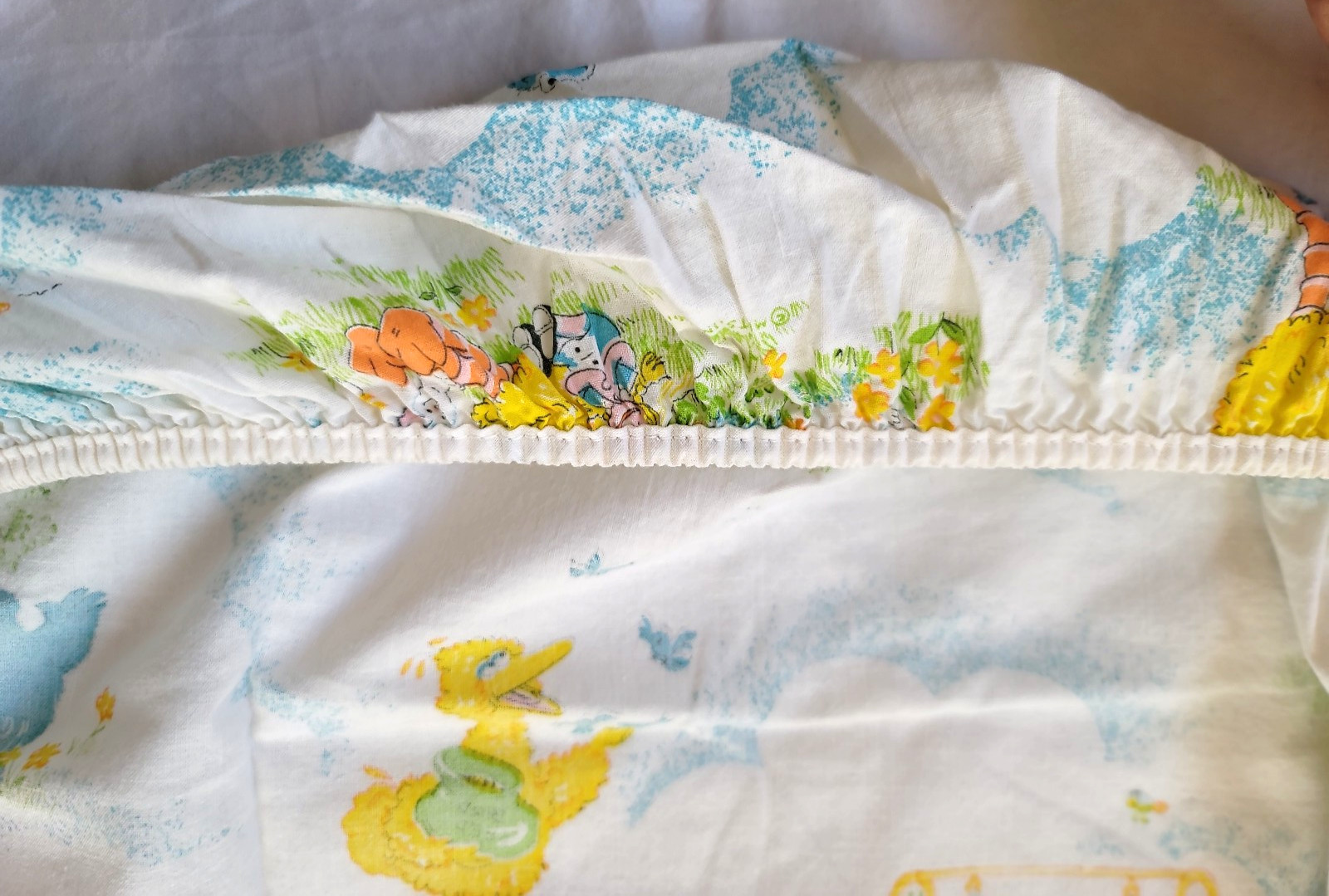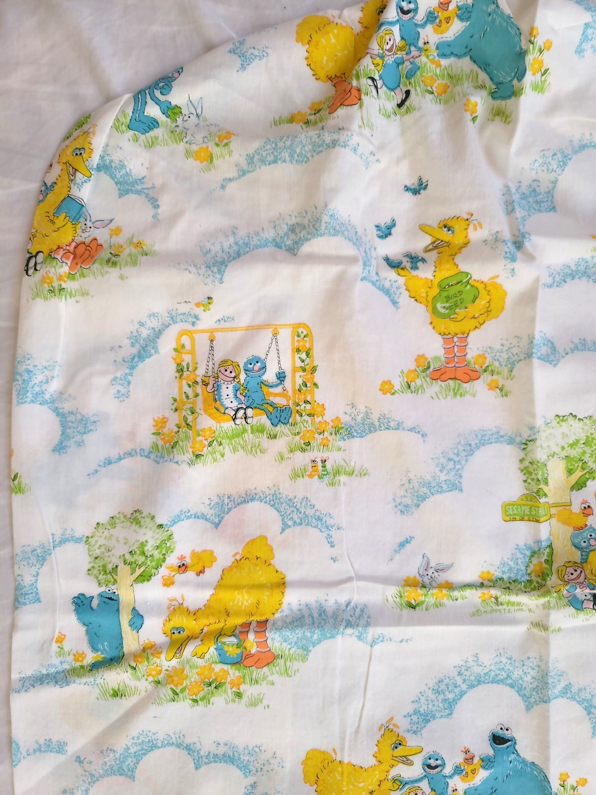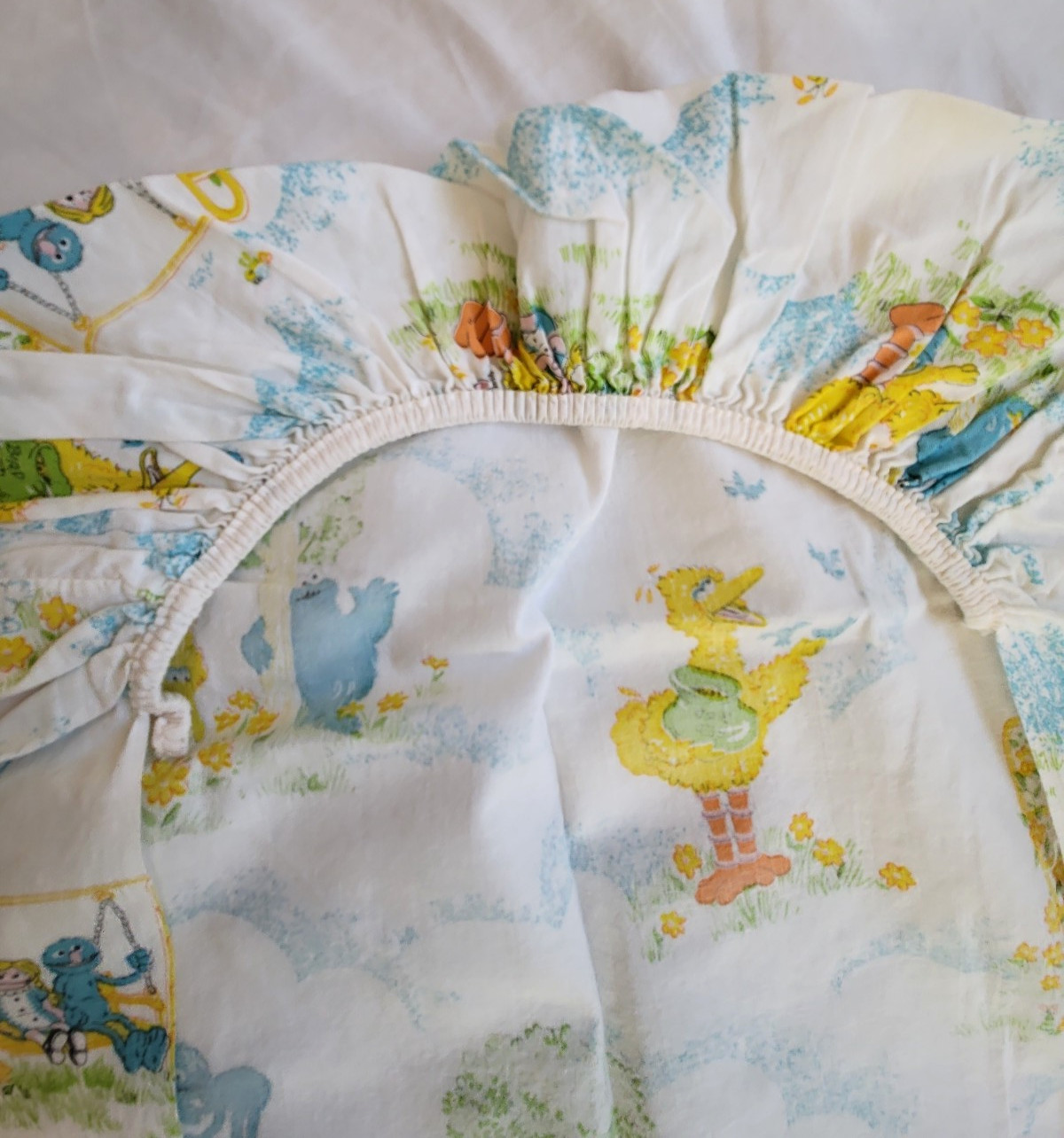 Vtg Sesame Street Fitted Crib Sheet Muppets Park Big Bird Grover Cookie Monster