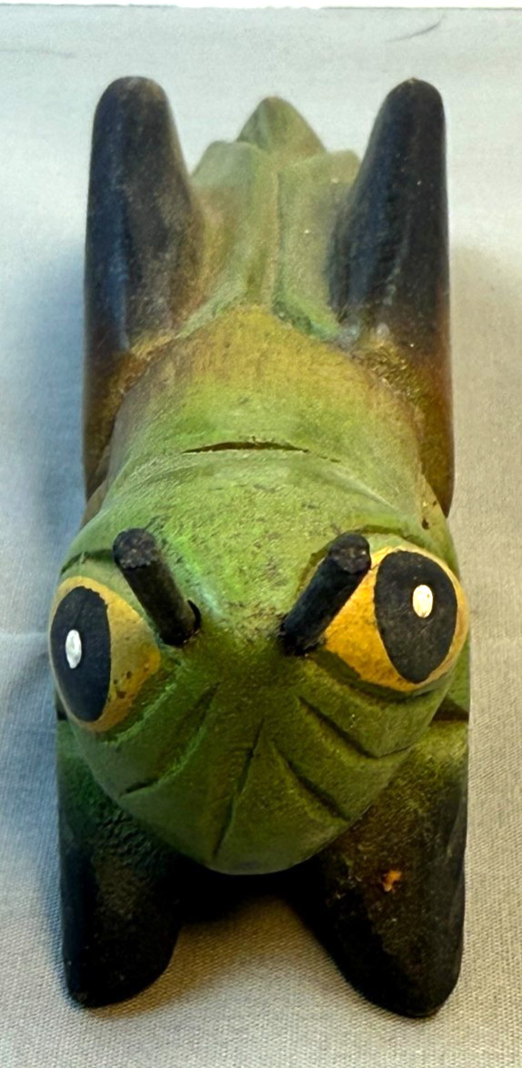 Hand Carved Wooden Cricket Guiro Percussion Instrument Folk Art