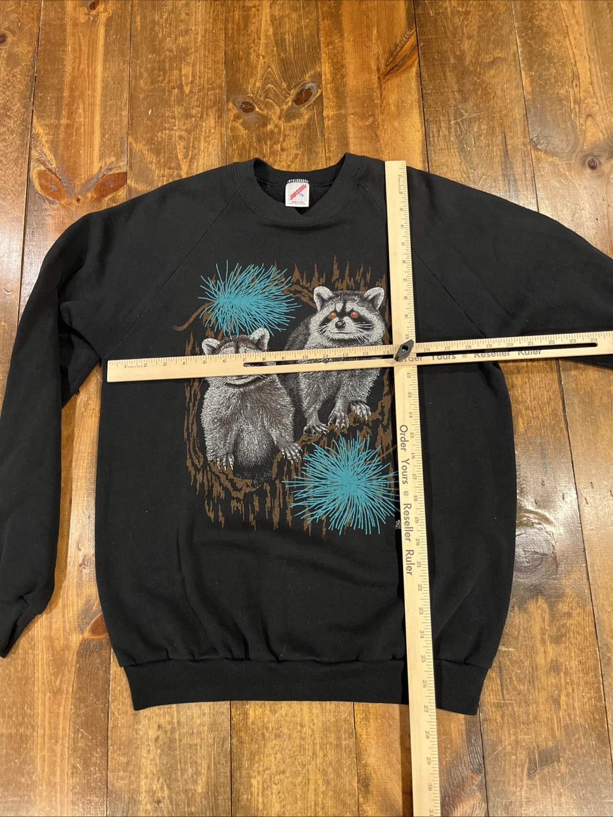как выглядит VTG Jerzees Raccoon Sweatshirt Adult XL Black Crew Nature Animal Graphic USA фото