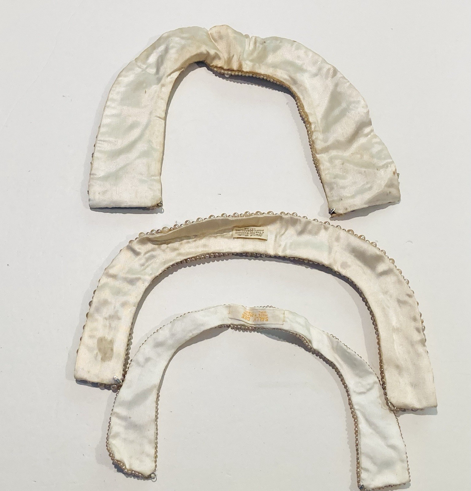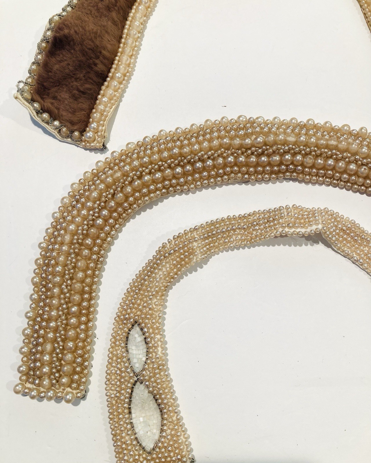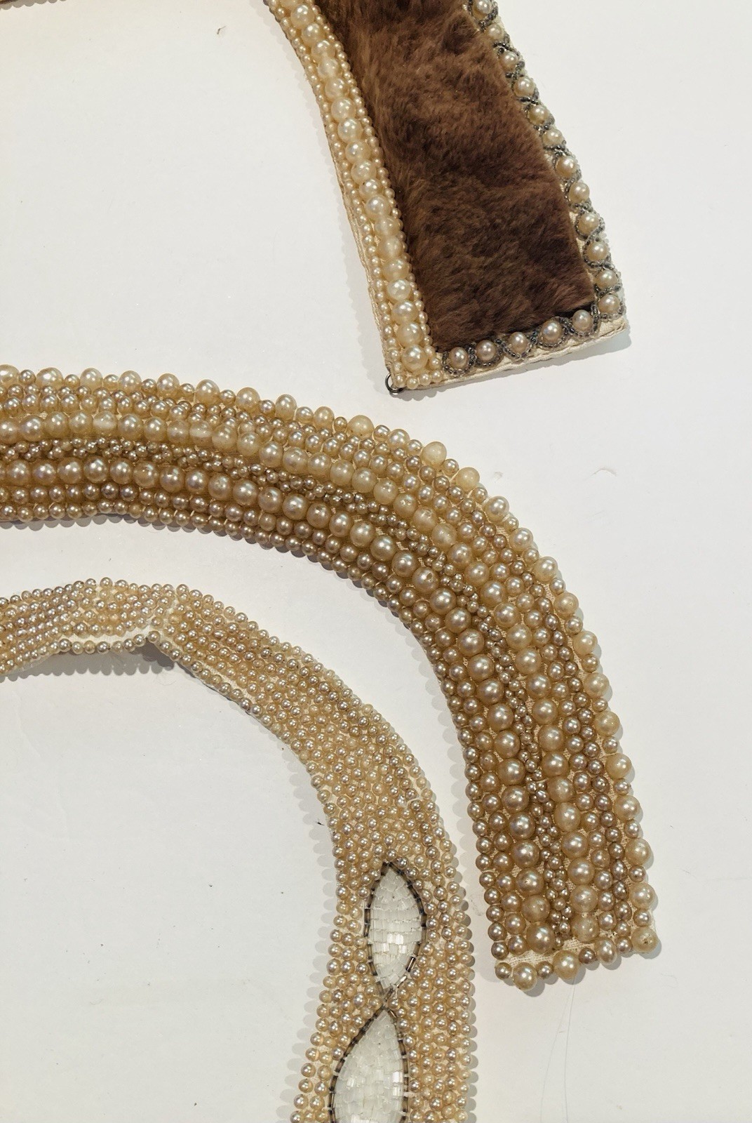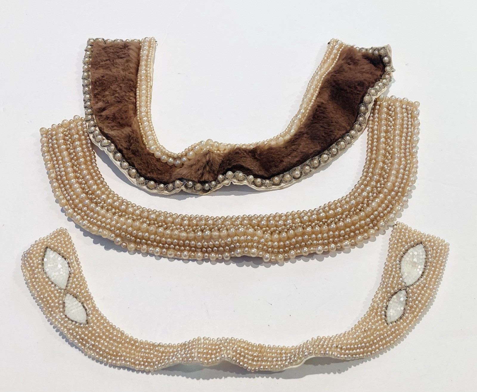 Vintage 1950s lot of 3 beaded collars, Japan, faux pearls, fur