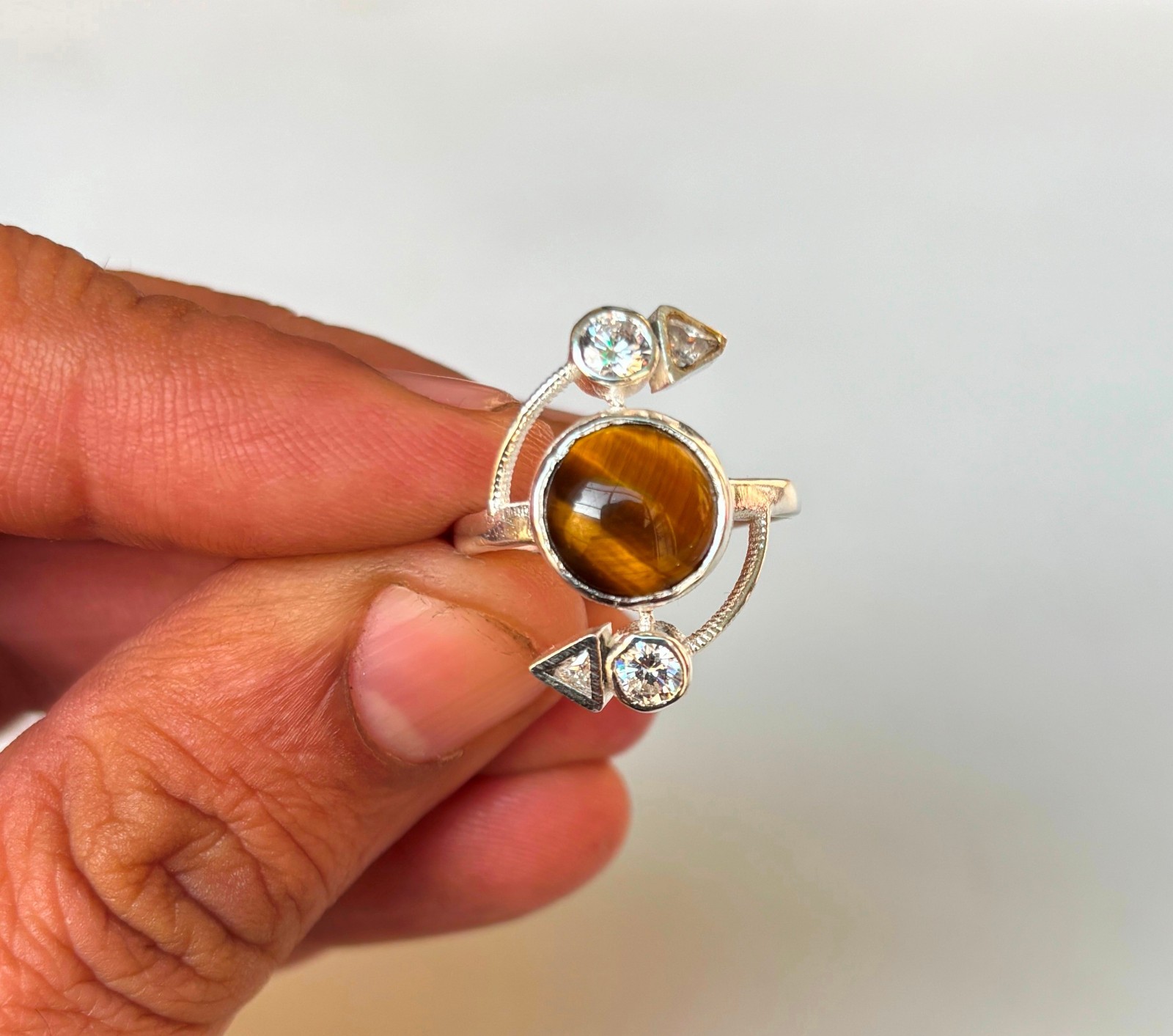 Tiger's Eye Ring 925 Sterling Silver Handmade Gemstone Jewelry For Women
