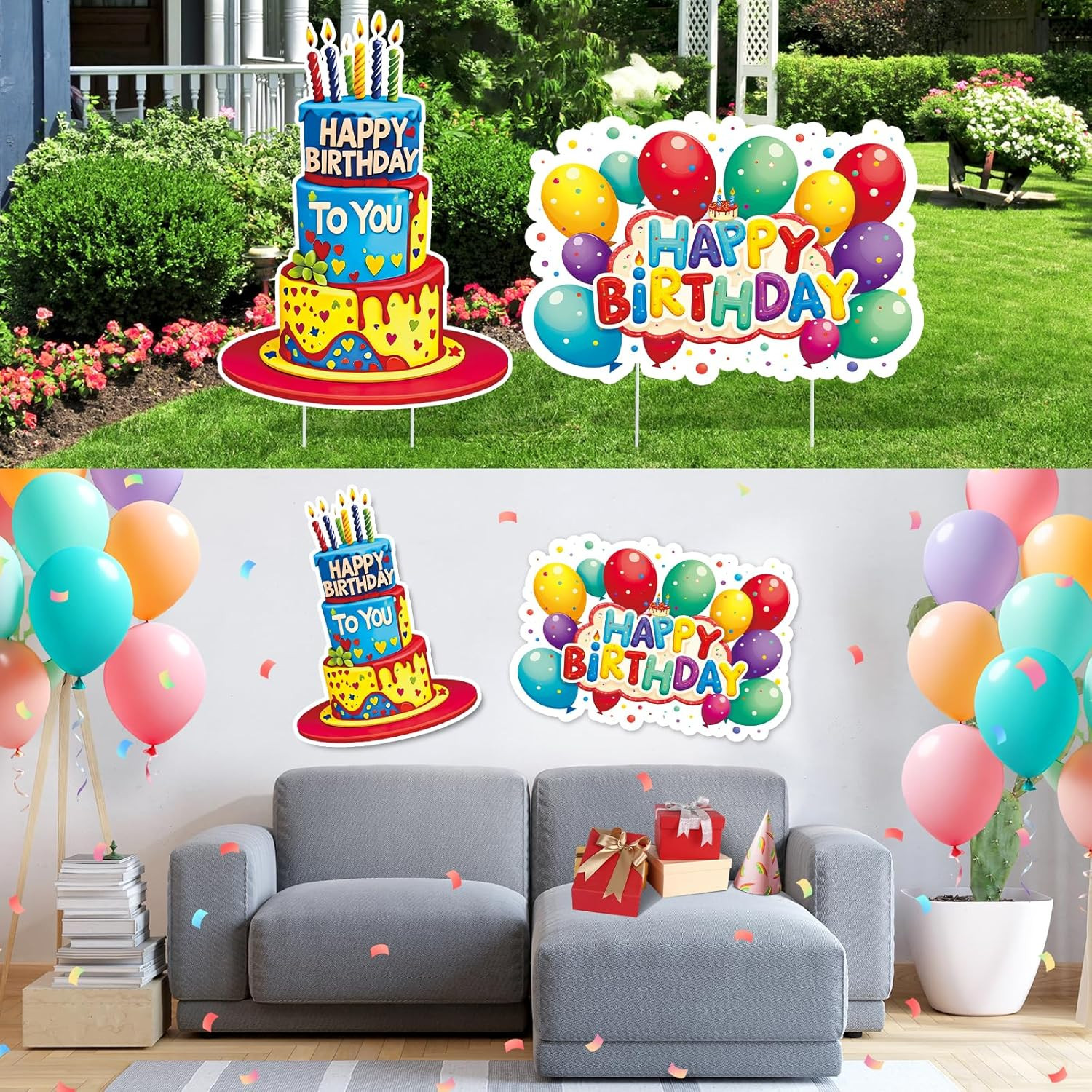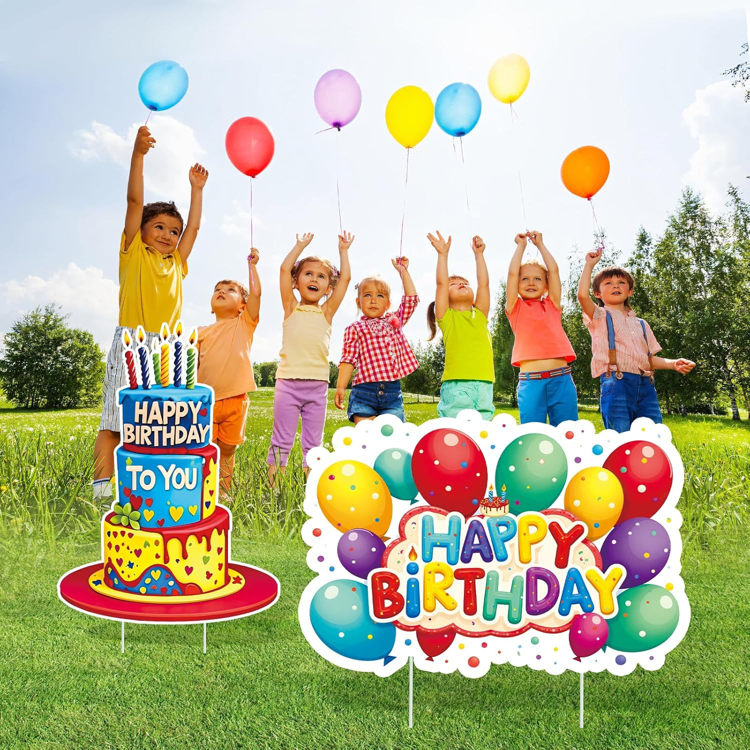2 Pack Birthday Yard Signs Colorful Happy Birthday Lawn Signs with Stakes Birthd