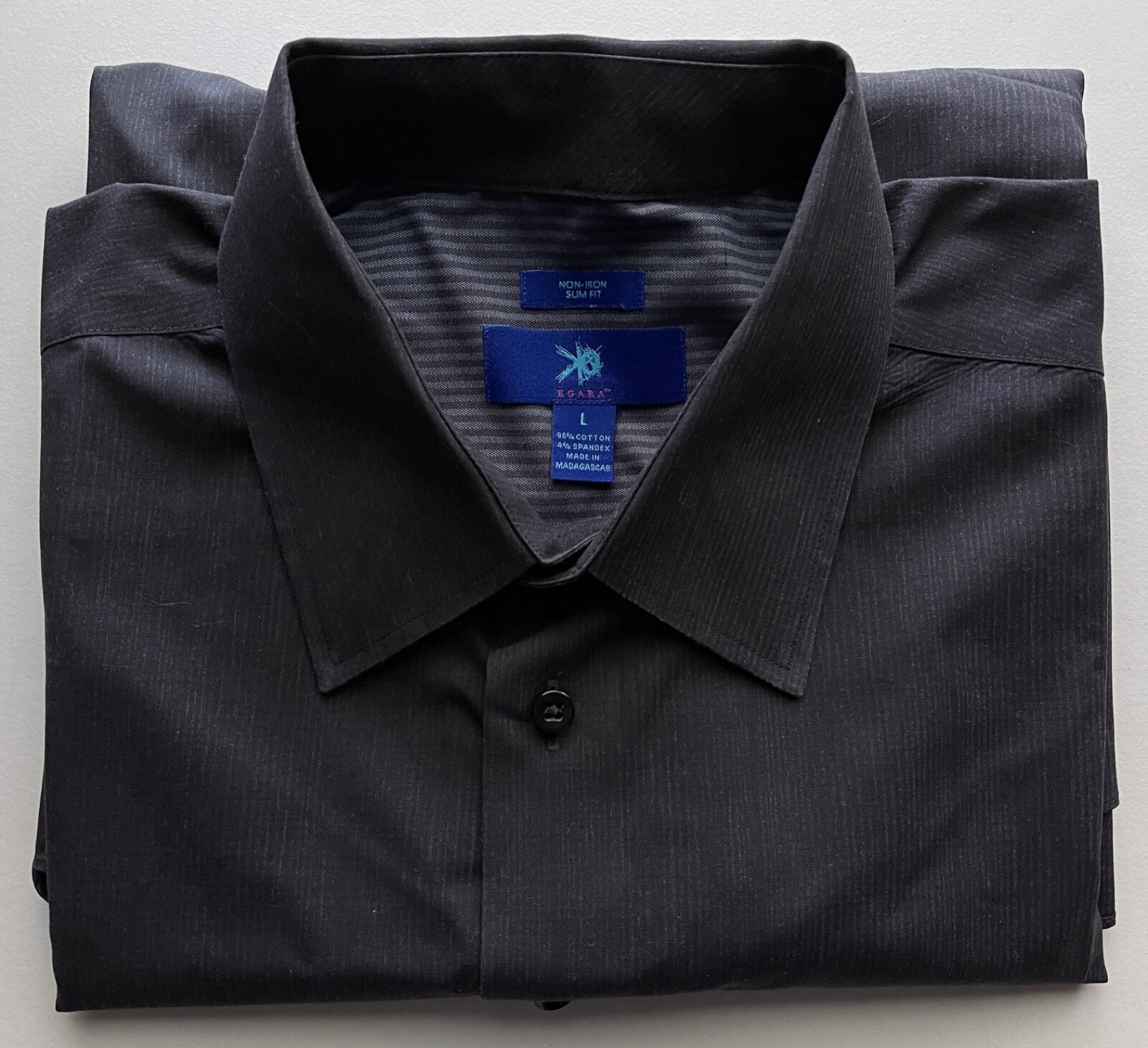 EGARA Non-iron Slim Fit LS button shirt men size L black vert stripes flip cuffs