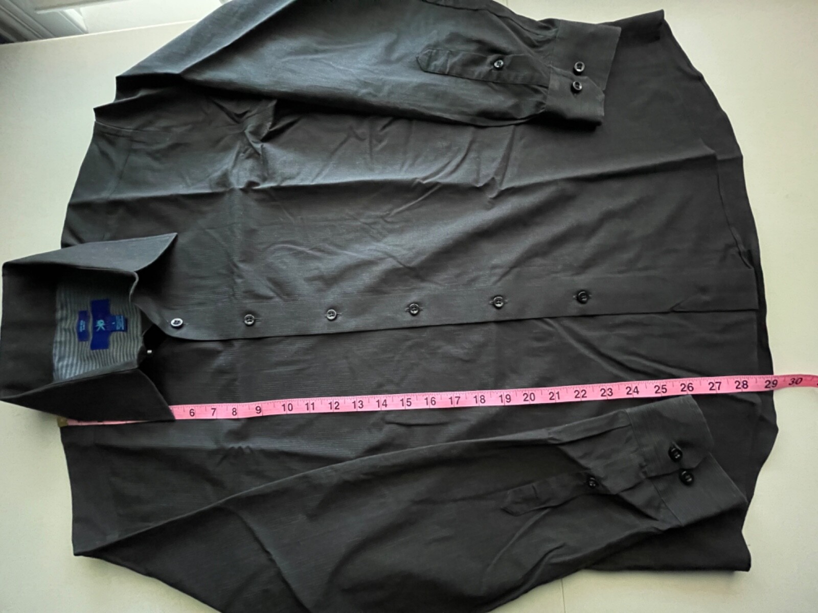 как выглядит EGARA Non-iron Slim Fit LS button shirt men size L black vert stripes flip cuffs фото