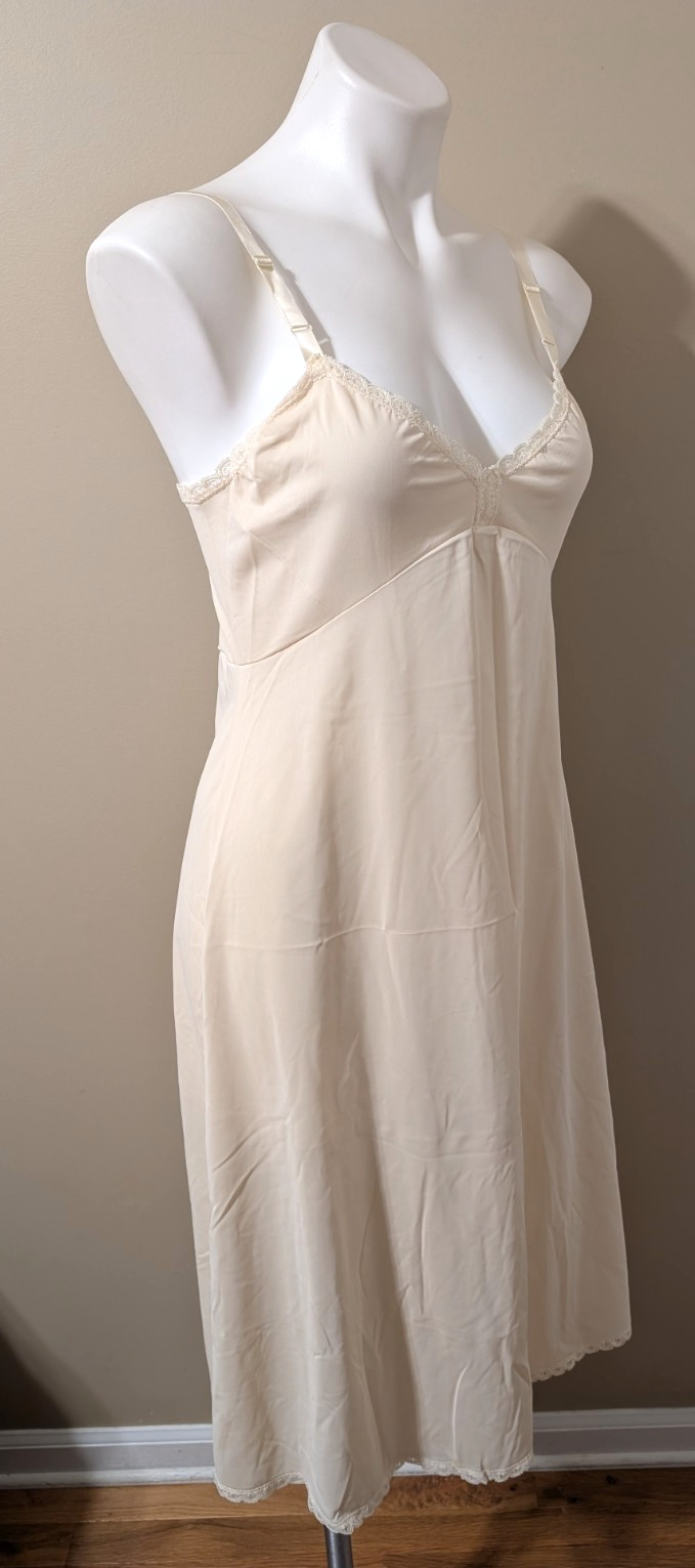 как выглядит NOS Vtg Shadowline Full Slip 38 MS Pearl Beige Nylon Spandex Lace Trim USA/NWT фото