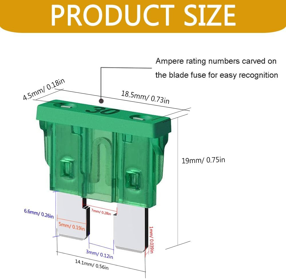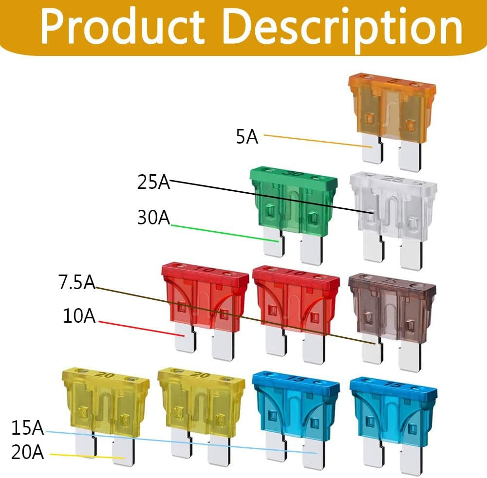 10 PCS Standard Fuse Assortment Kit, 5A 7.5A 10A 15A 20A 25A 30A Car Fuses Ass